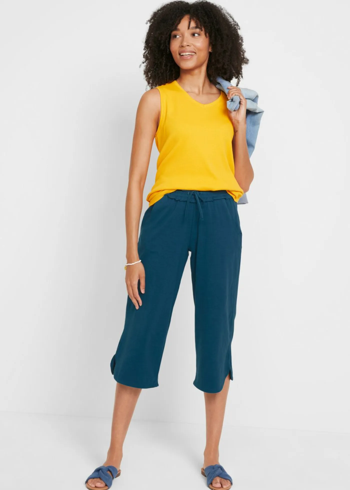Modelo cómodo con corte holgado, cinturilla elástica, cordón ajustable y bolsillos inclinados. Largo interior de la pierna de aprox. 55 cm en talla 42. Se puede lavar a máquina.