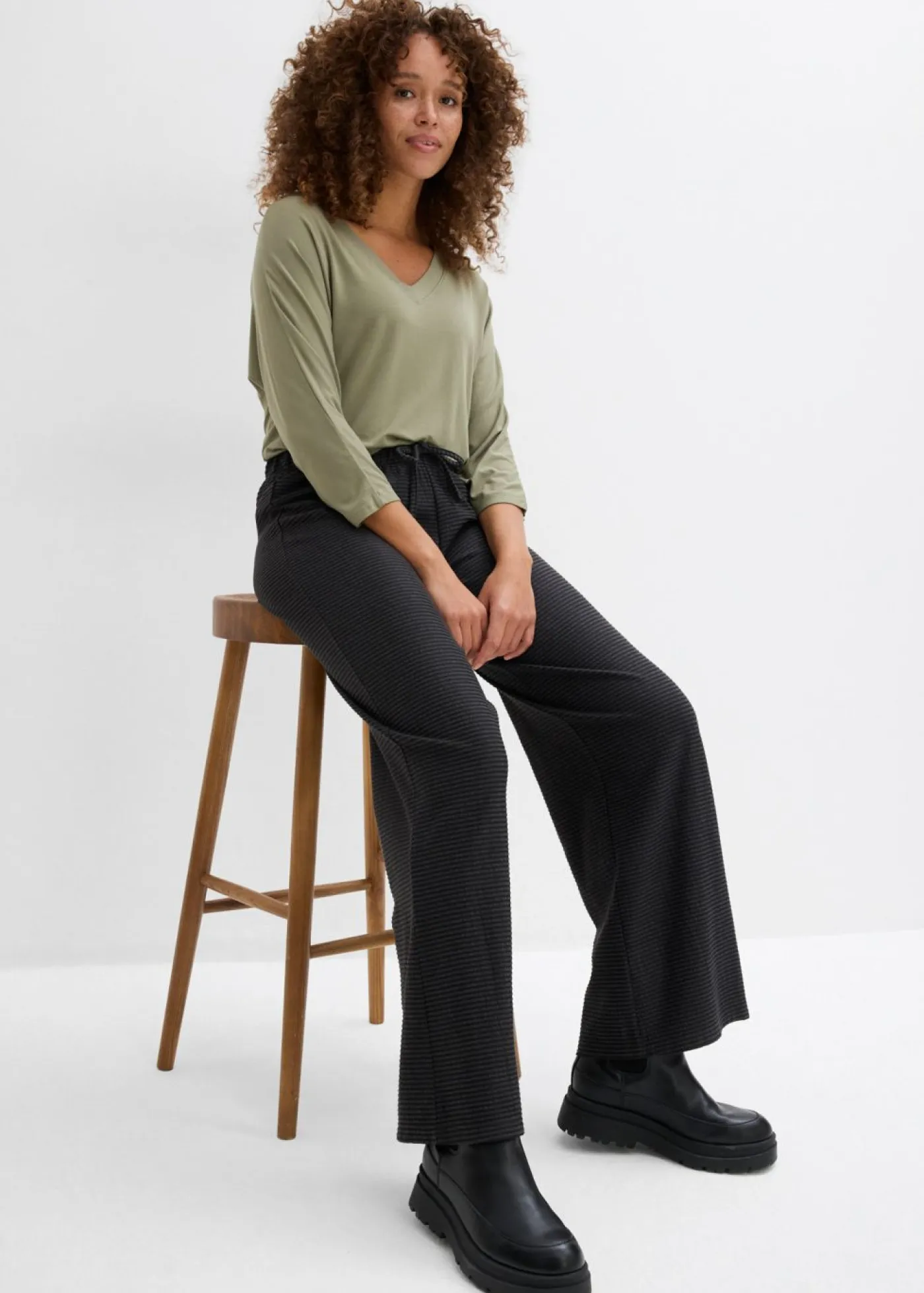 Pantalón de punto con corte holgado y diseño de rayas. Largo interior de la pierna de aprox. 78,5 cm en talla 40/42.