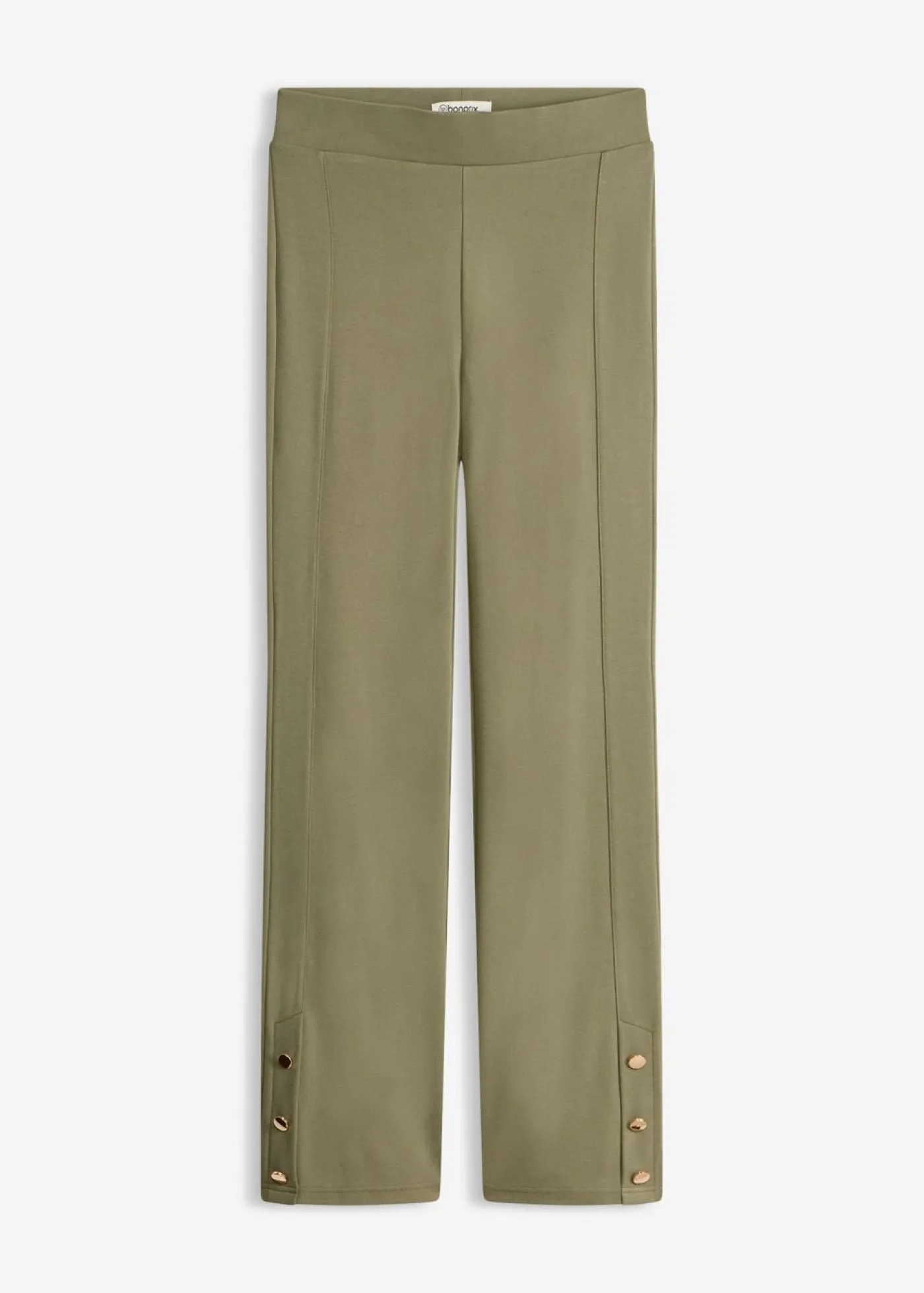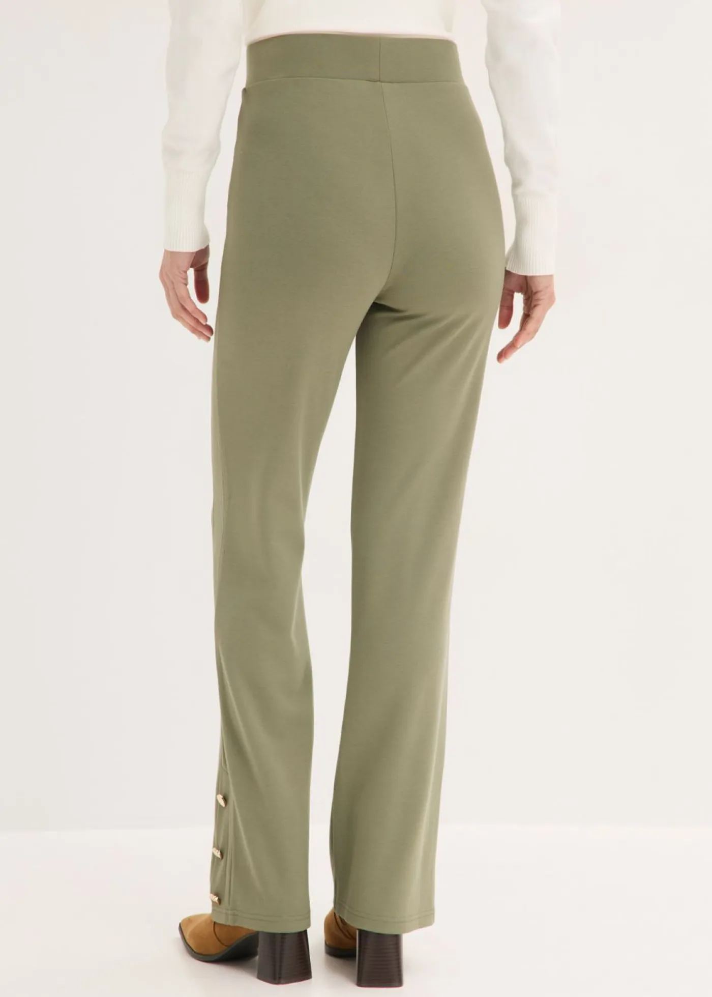 Elegante pantalón de punto con botones decorativos en la pernera.