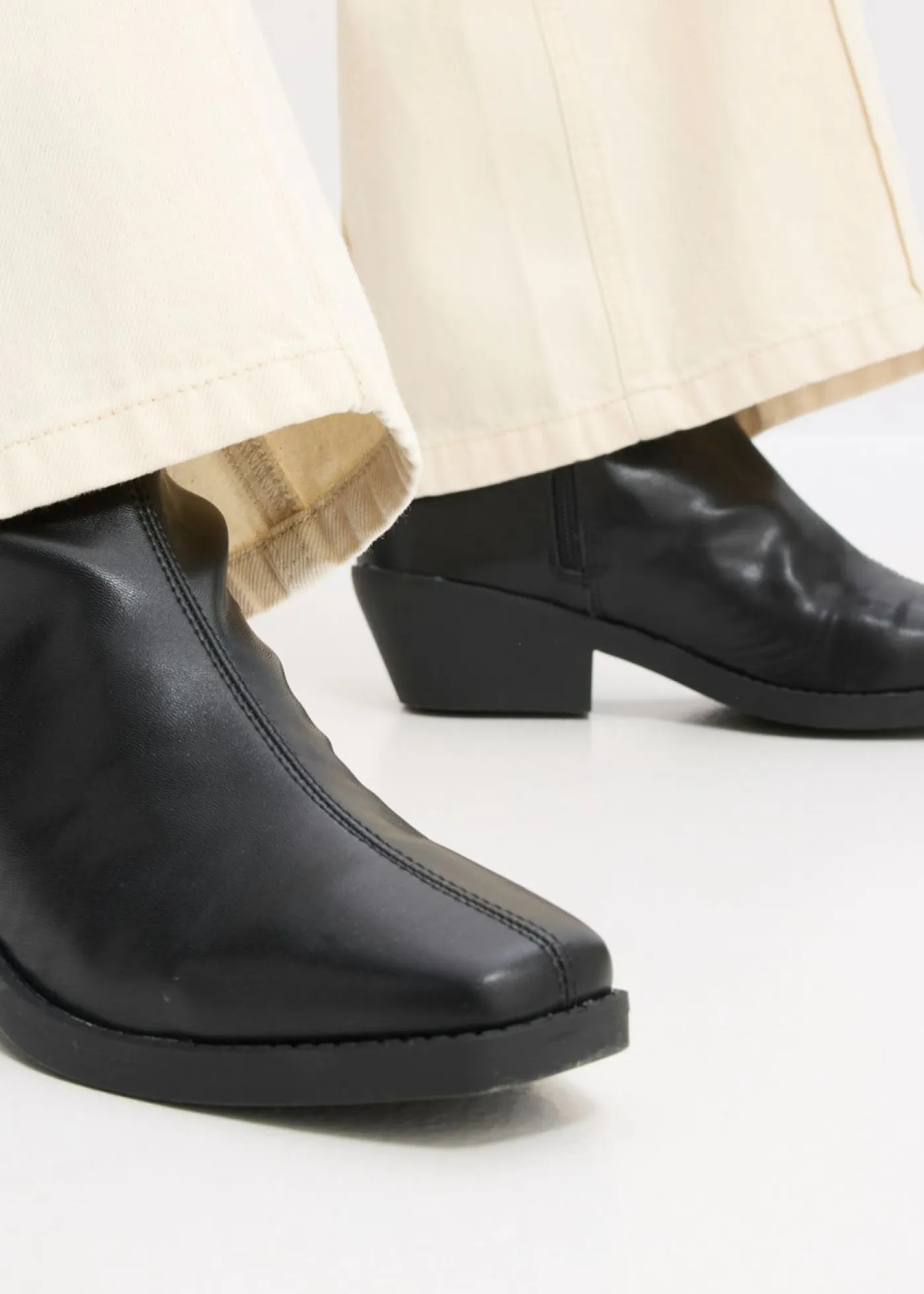 Pantalón informal de sarga con perneras anchas y bolsillos laterales.