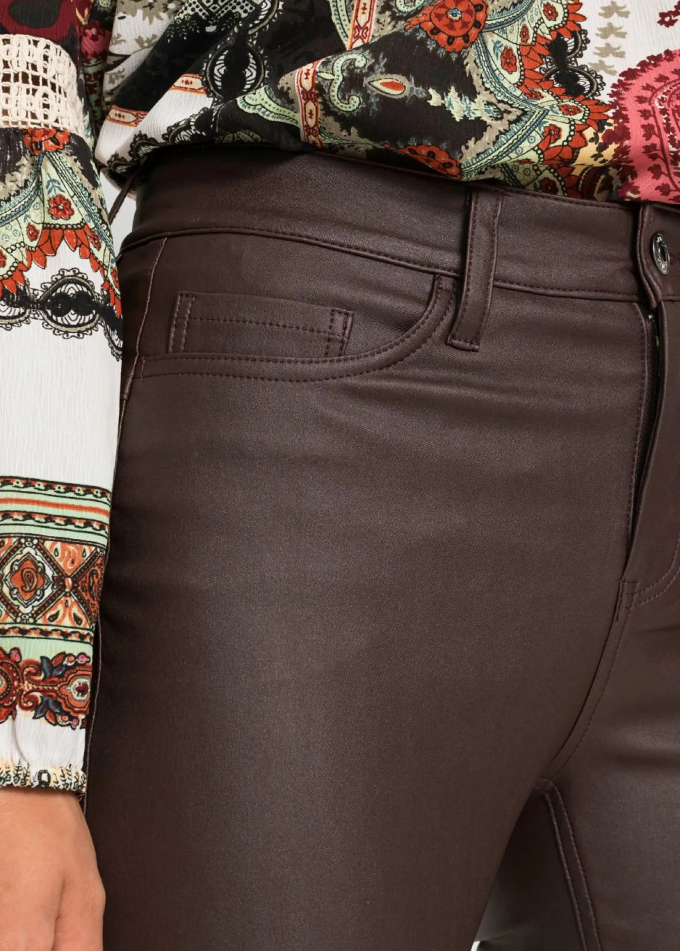 Atrae todas las miradas: pantalón elástico push-up con aspecto de cuero.