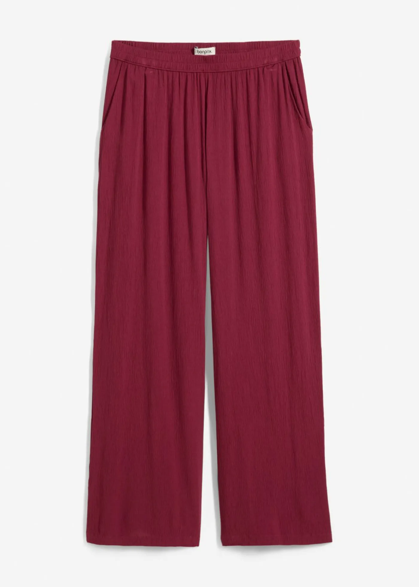 Pantalón Palazzo en tejido arrugado con pernera ancha. Largo interior de la pierna de aprox. 73,5 cm en talla 42. Se puede lavar a máquina.