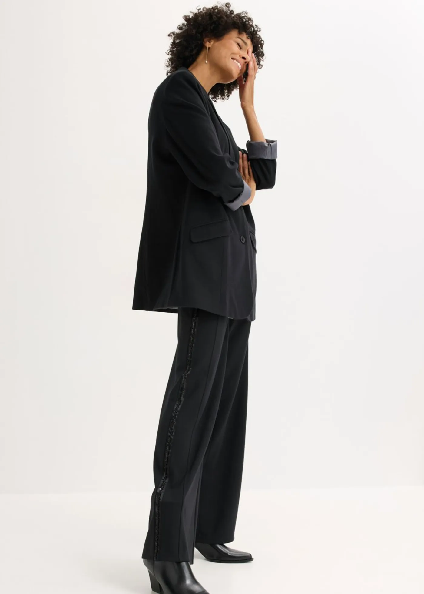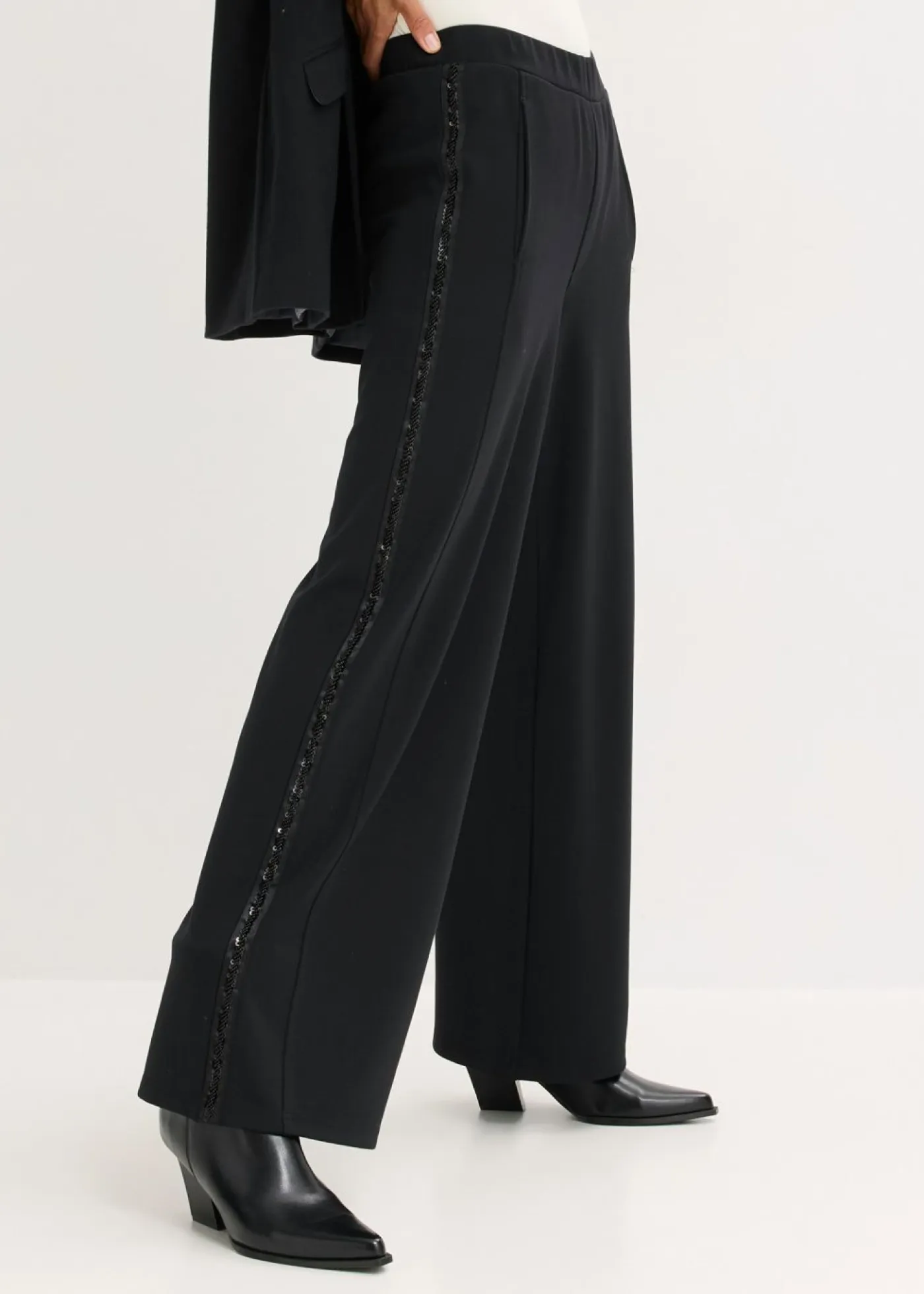 Elegante pantalón sin cierre Punto di Roma con divertidas piedras brillantes.