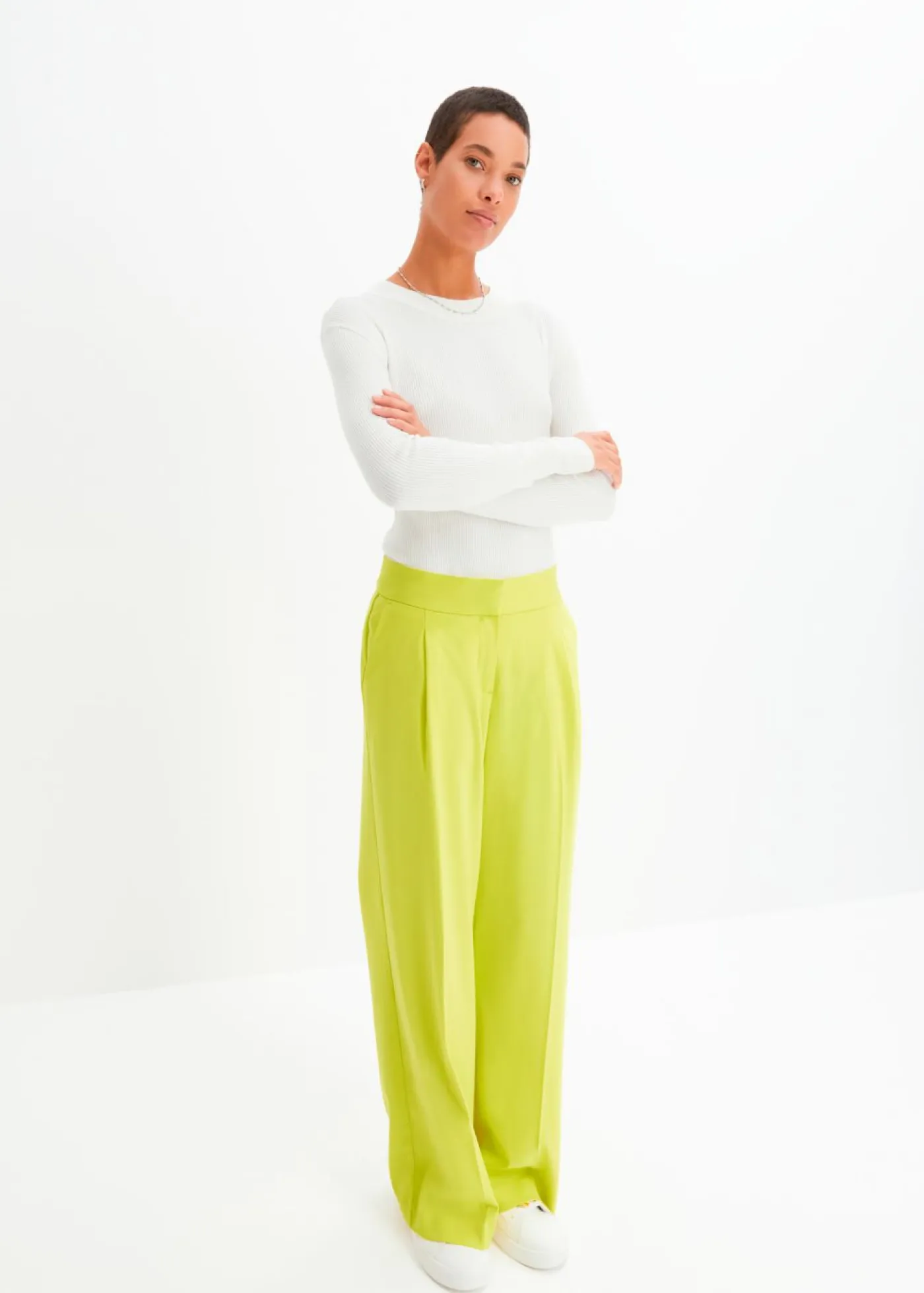 Encantador pantalón de pierna ancha con bolsillos laterales.