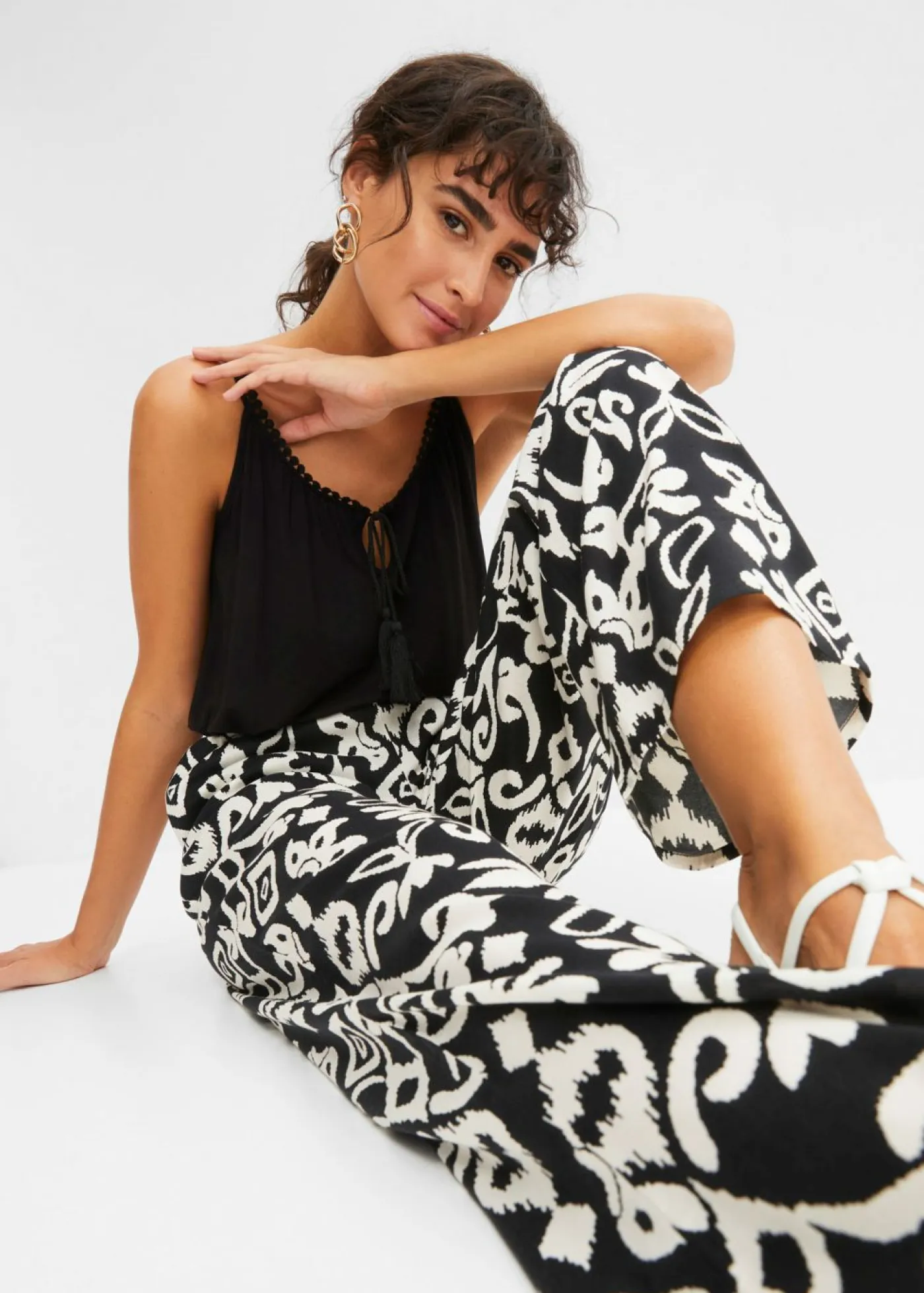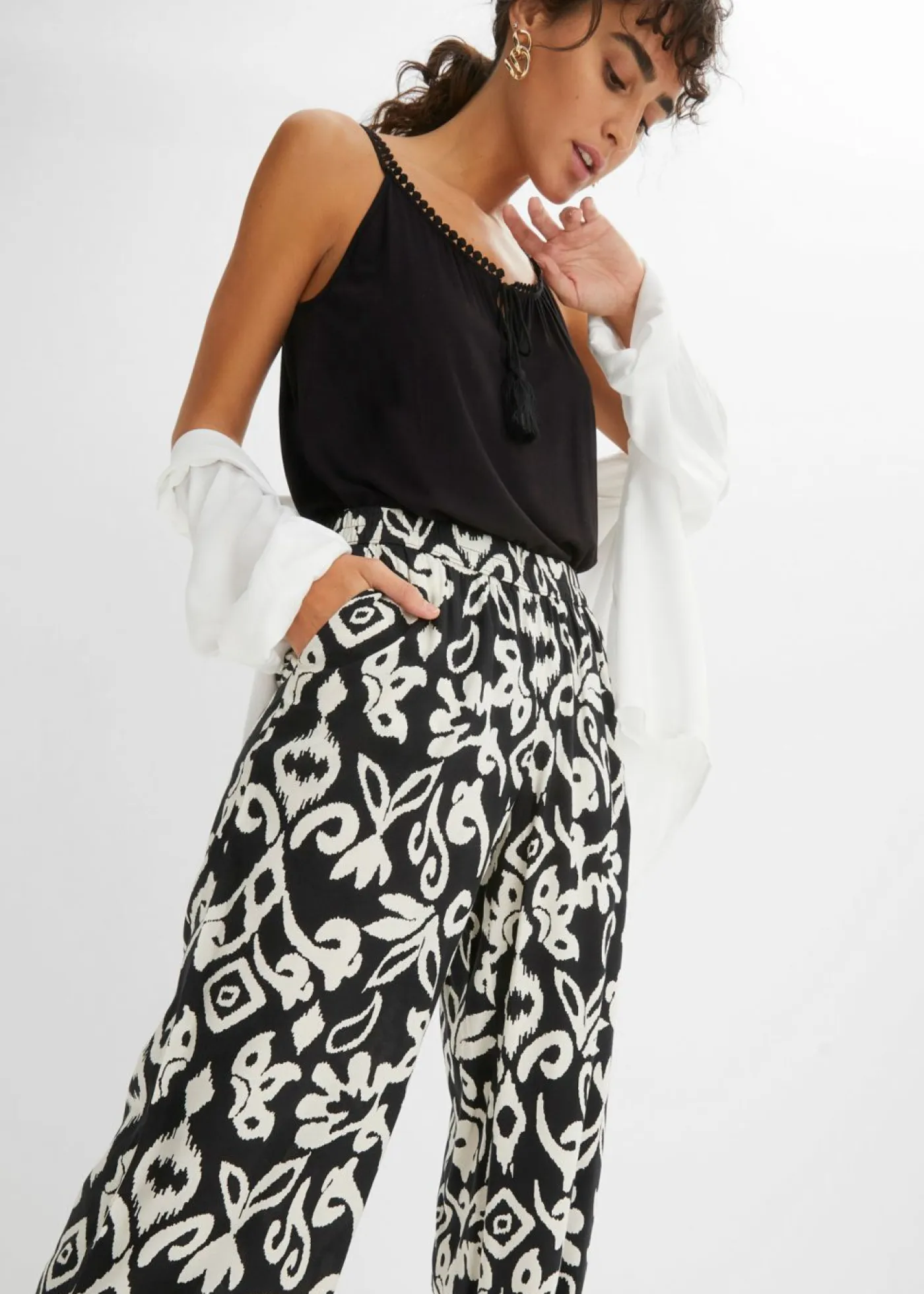 Pantalón Marlene estampado de viscosa fluida, Largo. petite