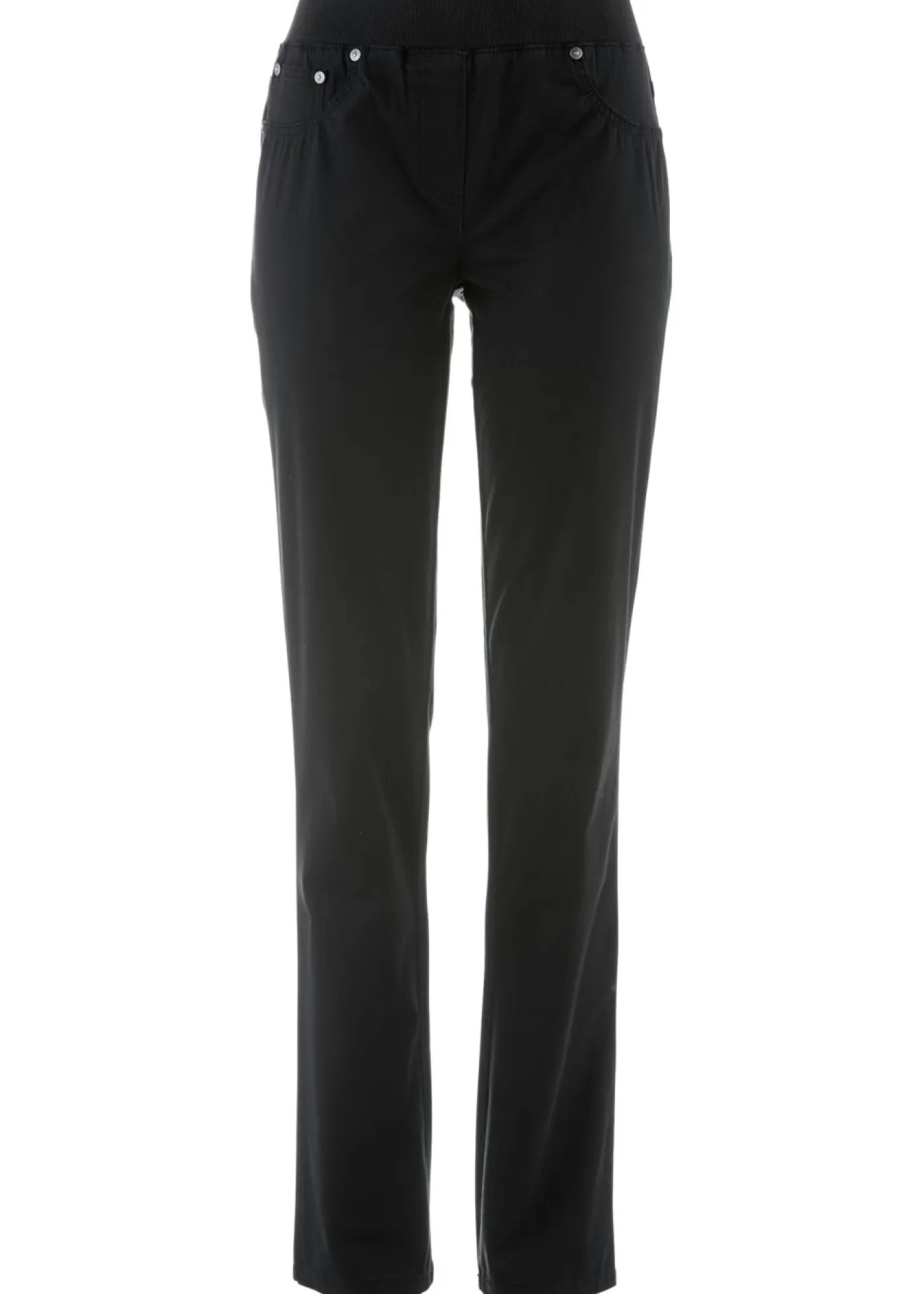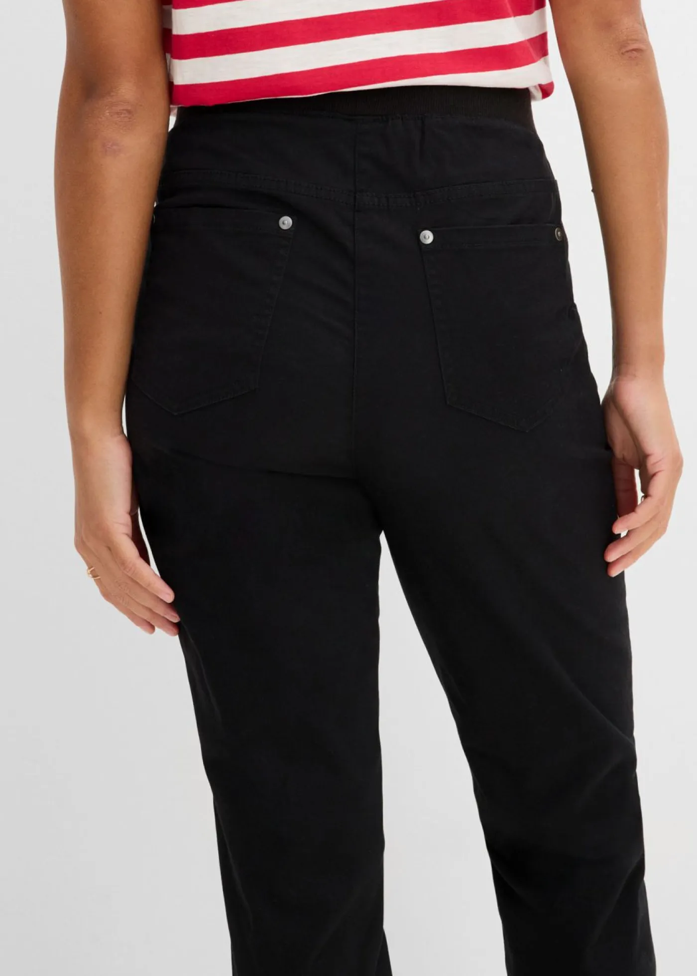 Cómodo pantalón con pernera recta, cintura de canalé y tachuelas. Largo interior de la pierna de aprox. 81 cm en talla 42. Se puede lavar a máquina.