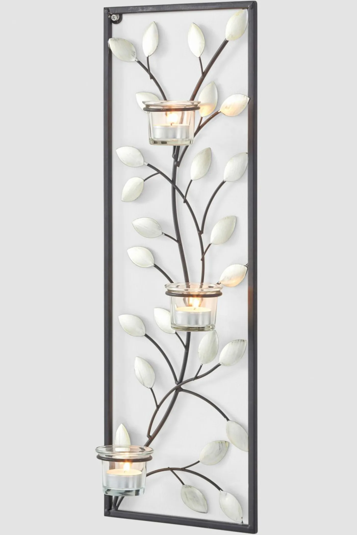 Para decoraciones de pared con estilo: candelabro de pared. Este elegante portavelas de pared decora cualquier pared en un abrir y cerrar de ojos. El portavelas de metal presenta un acabado en pintura negra que le otorga un aspecto sofisticado. Con 3 portavelas transparentes. Se entrega sin velas.