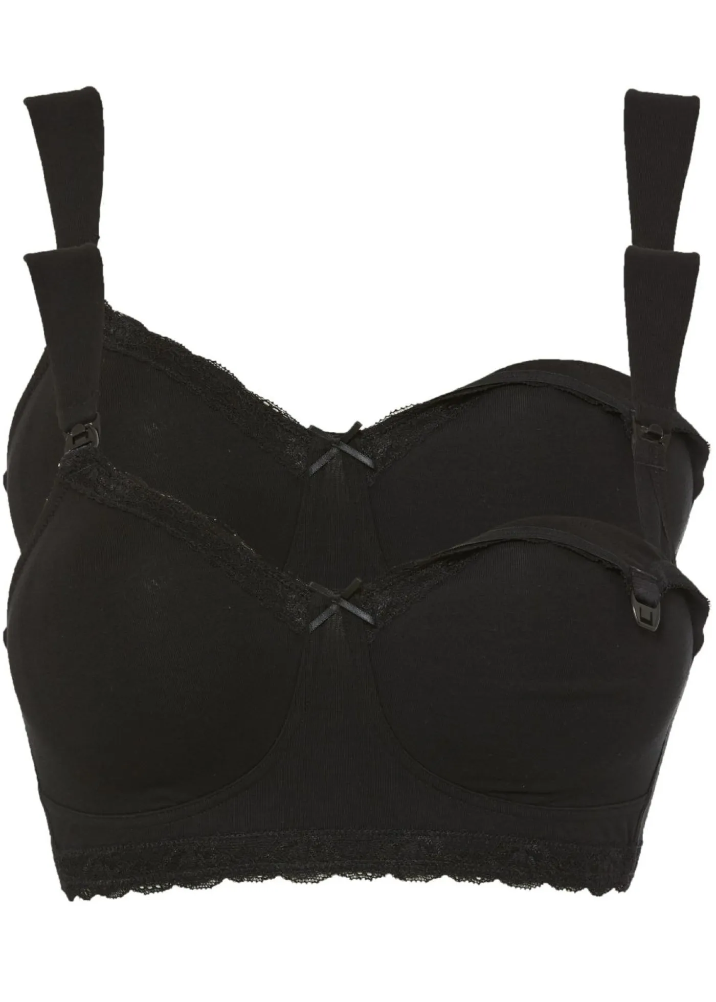 Sujetador de lactancia suave y sin aros con tirantes anchos y acolchados. Un bonito encaje adorna la copa y la parte inferior del pecho. Gracias a un broche entre los tirantes y la copa, el sujetador puede retirarse fácilmente para la lactancia.