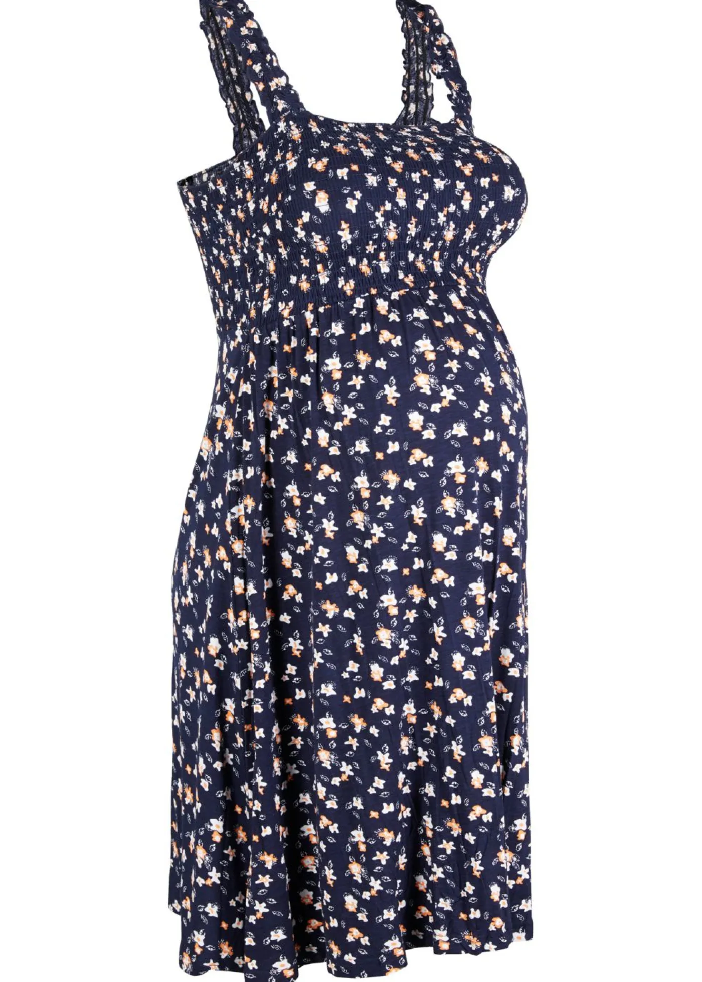 Vestido de maternidad aireado con fruncidos y estampado en todo el cuerpo. Este vestido premamá con estampado de flores es un magnífico vestido de verano y, gracias al material fluido de viscosa, es adecuado para todo el embarazo. La parte superior es especialmente cómoda.