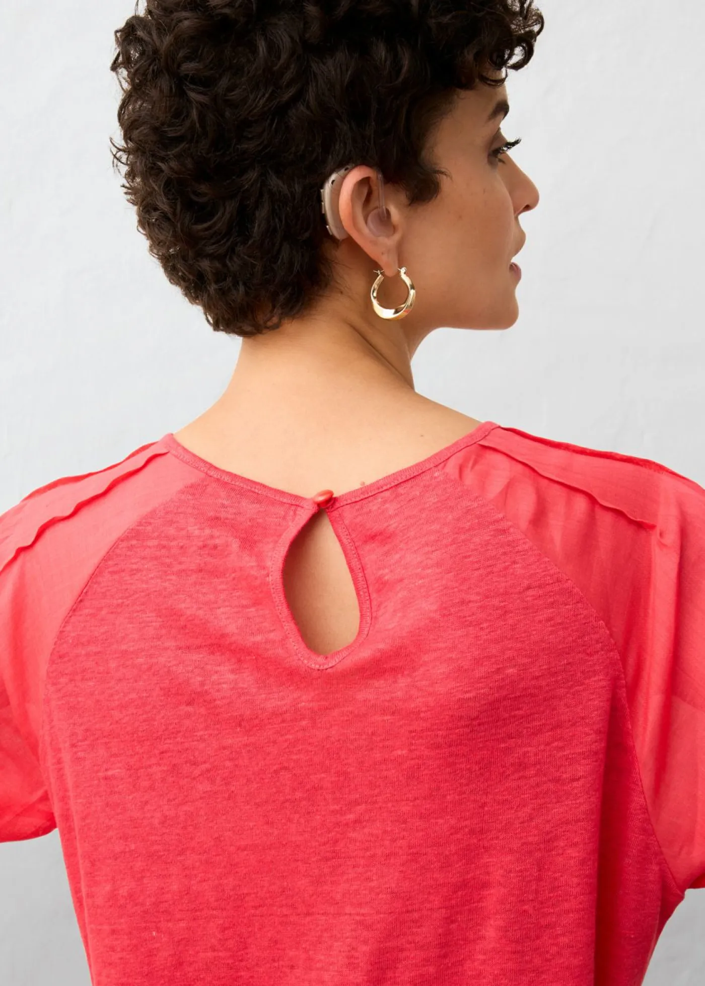 Camiseta de lino con mangas abullonadas