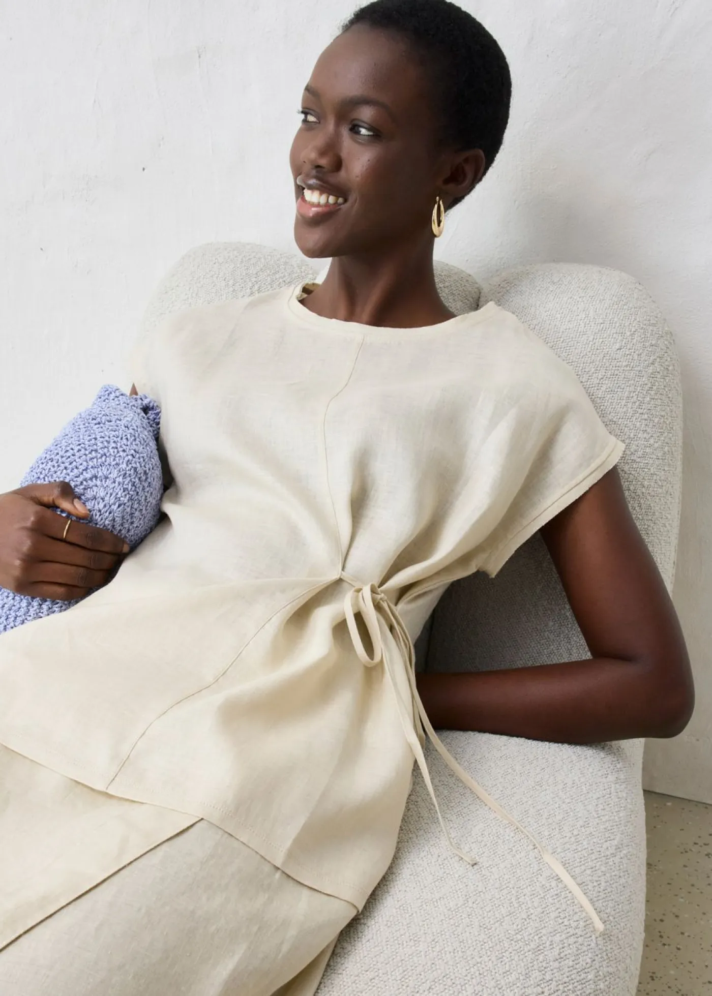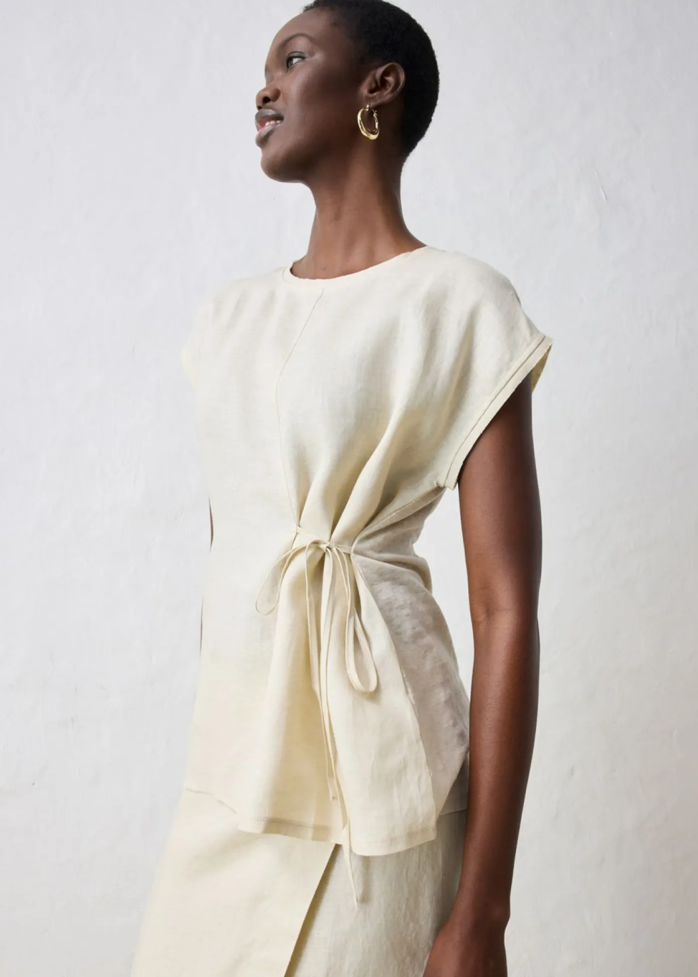 Camiseta moderna de lino de calidad con lazo en la parte delantera.