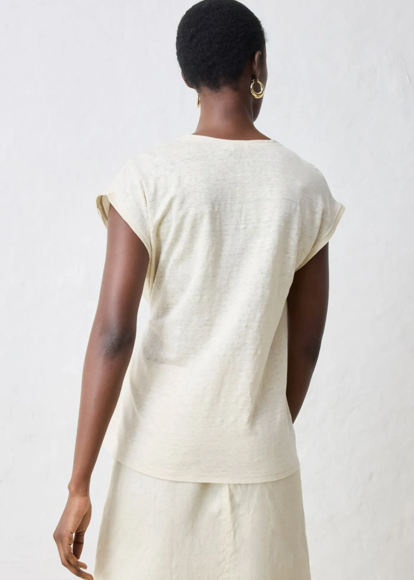 Camiseta de lino puro con ribete tejido
