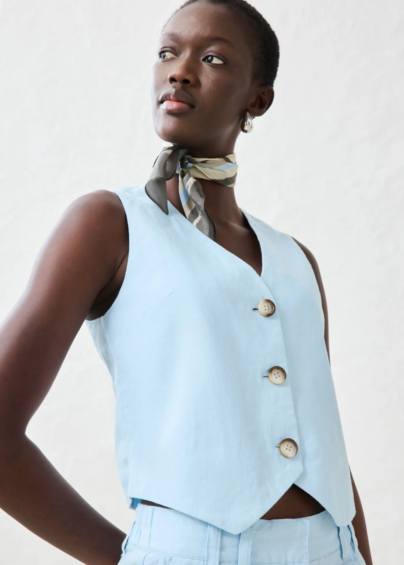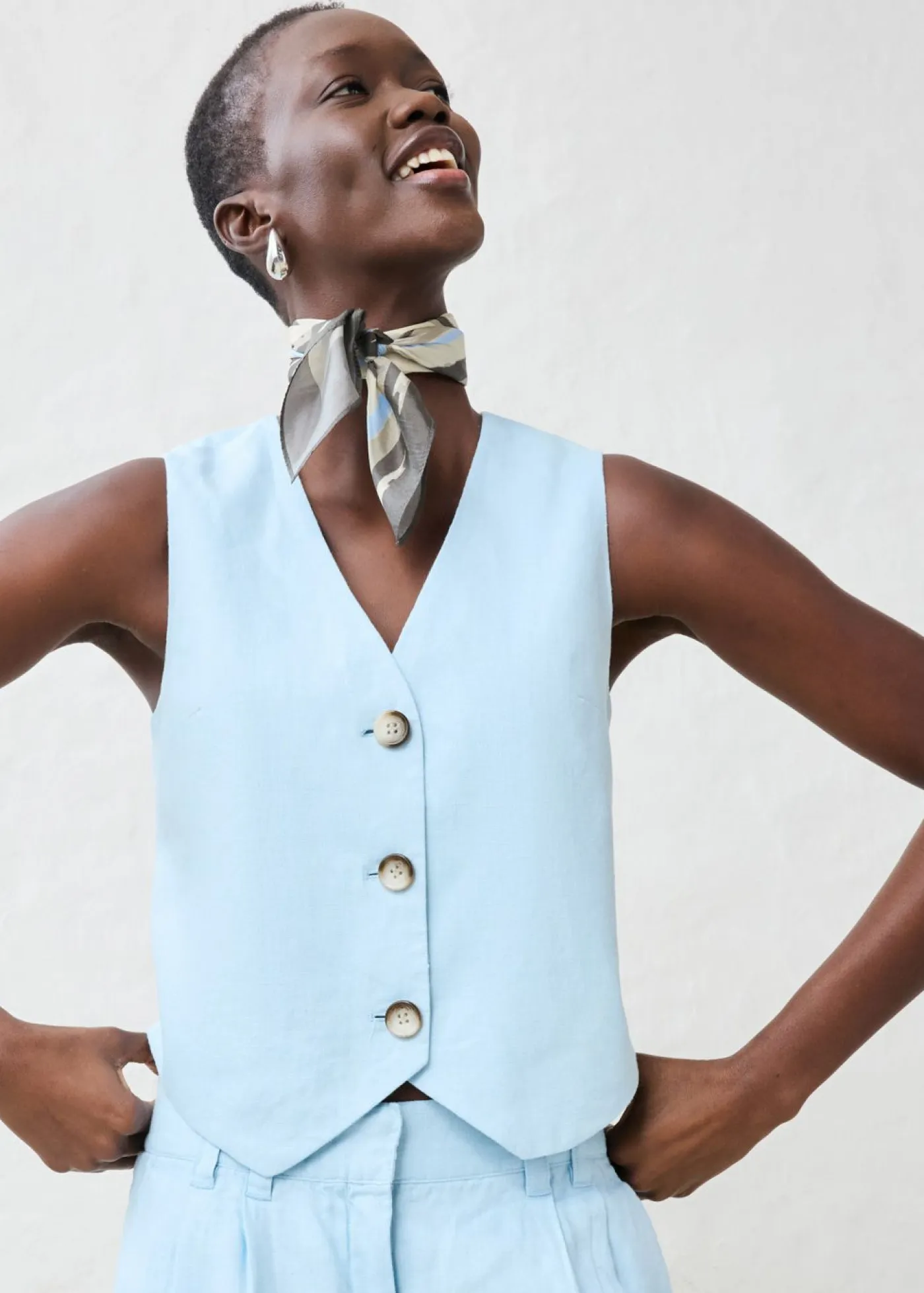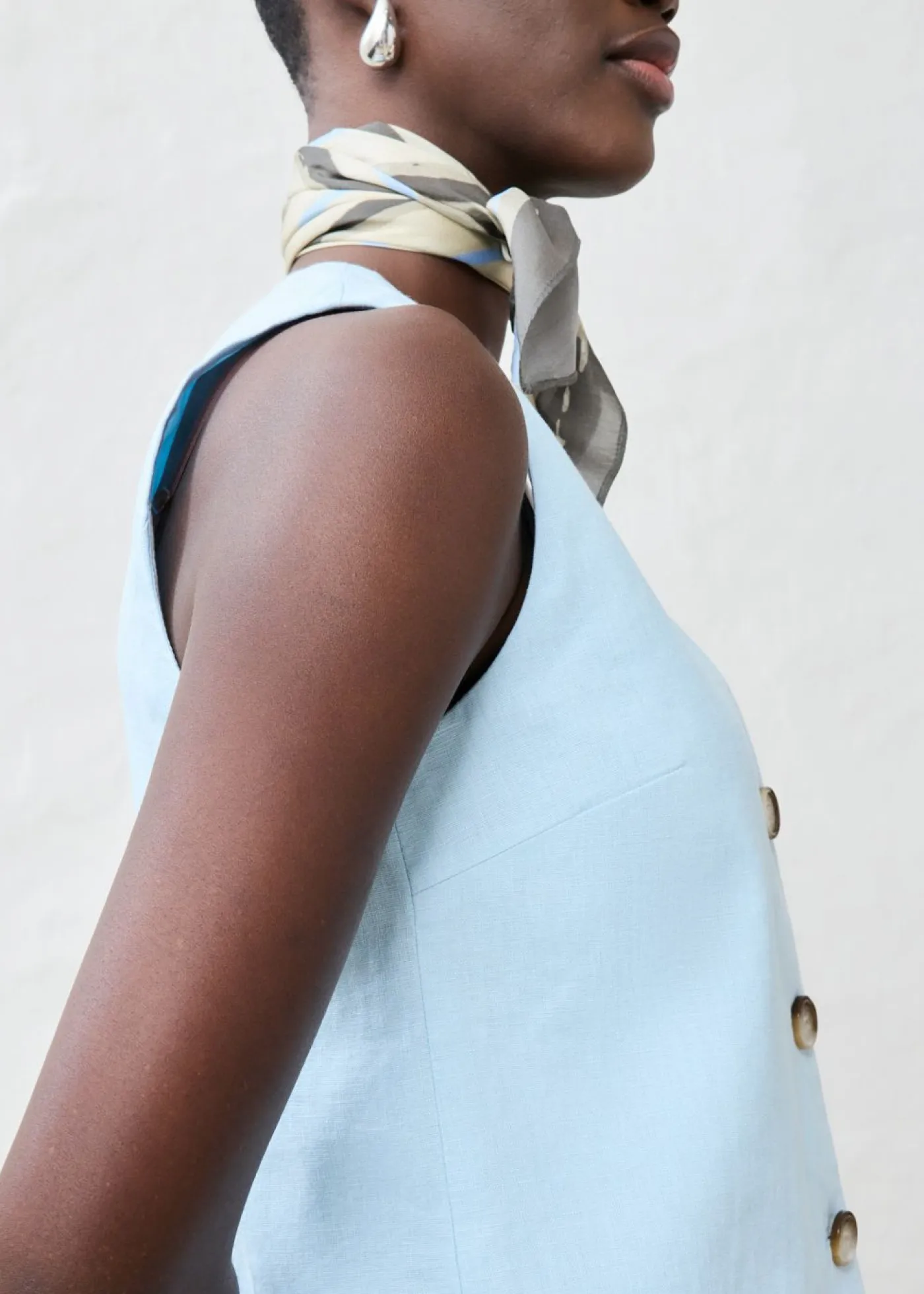 Chaleco de lino de calidad con forro de algodón agradable al tacto.