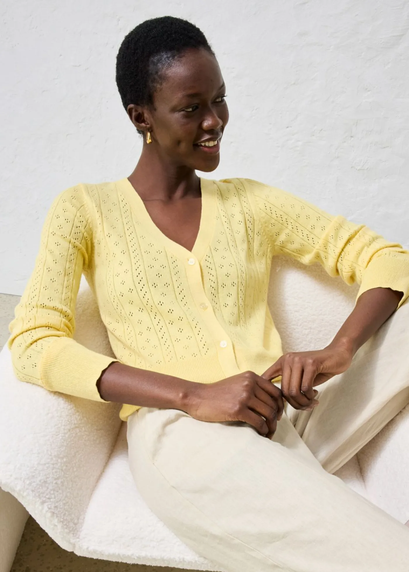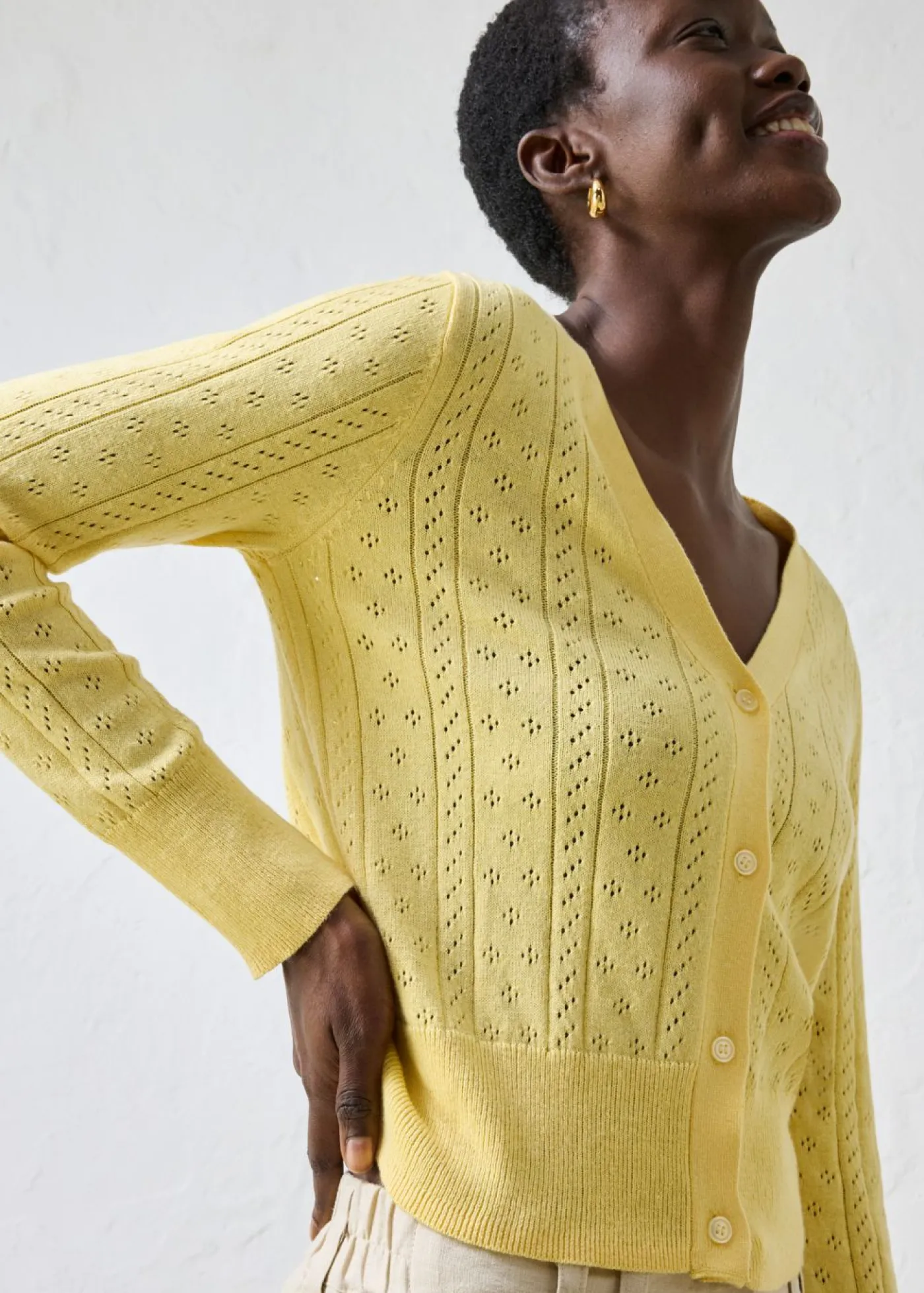 Chaqueta de punto ajour con mezcla de seda