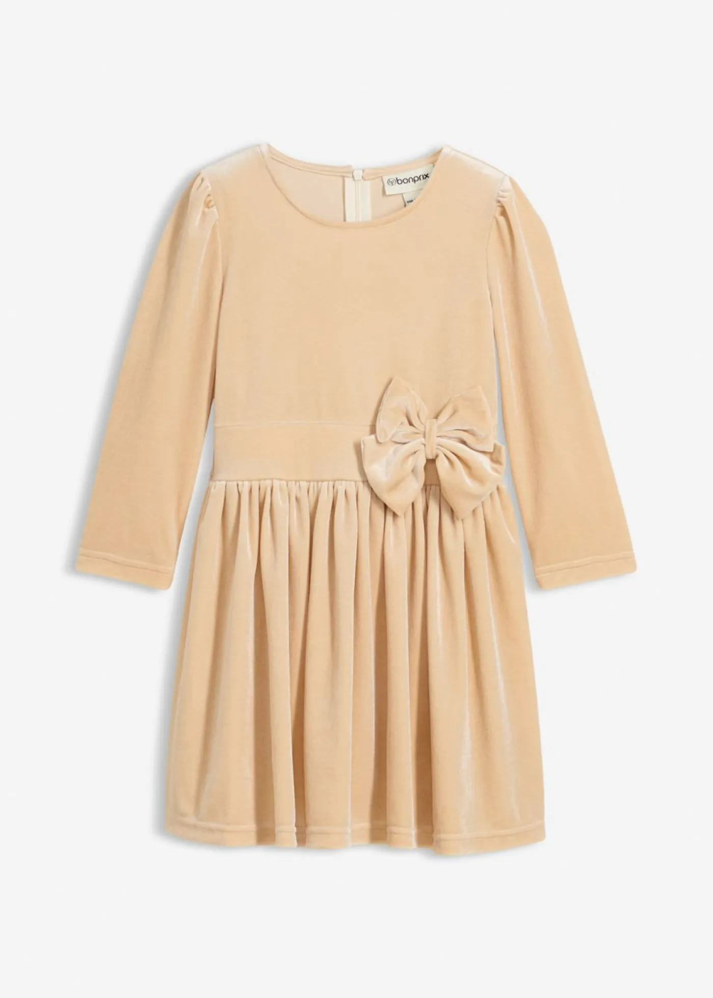 Bonito vestido de terciopelo con un gran lazo para niñas.