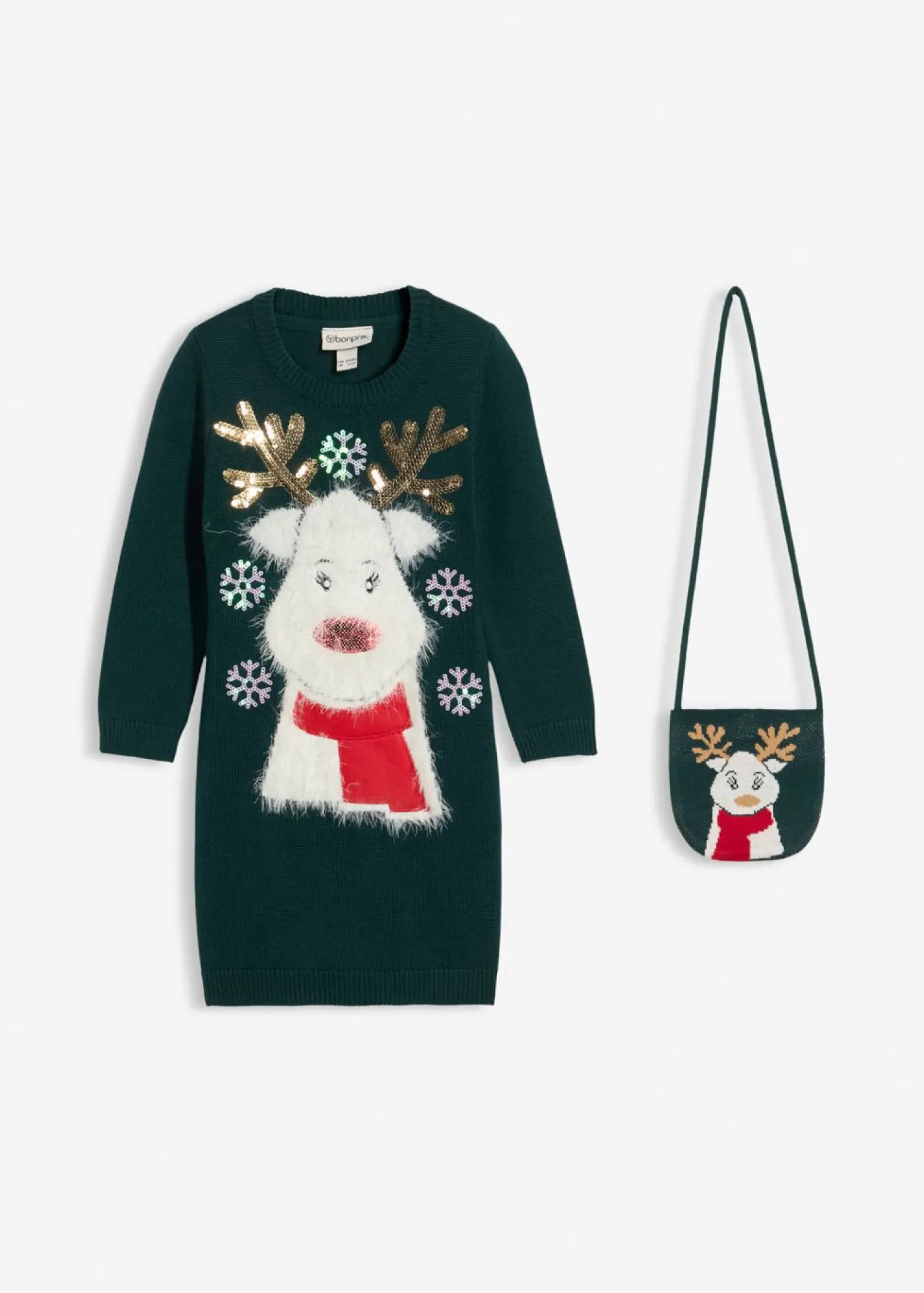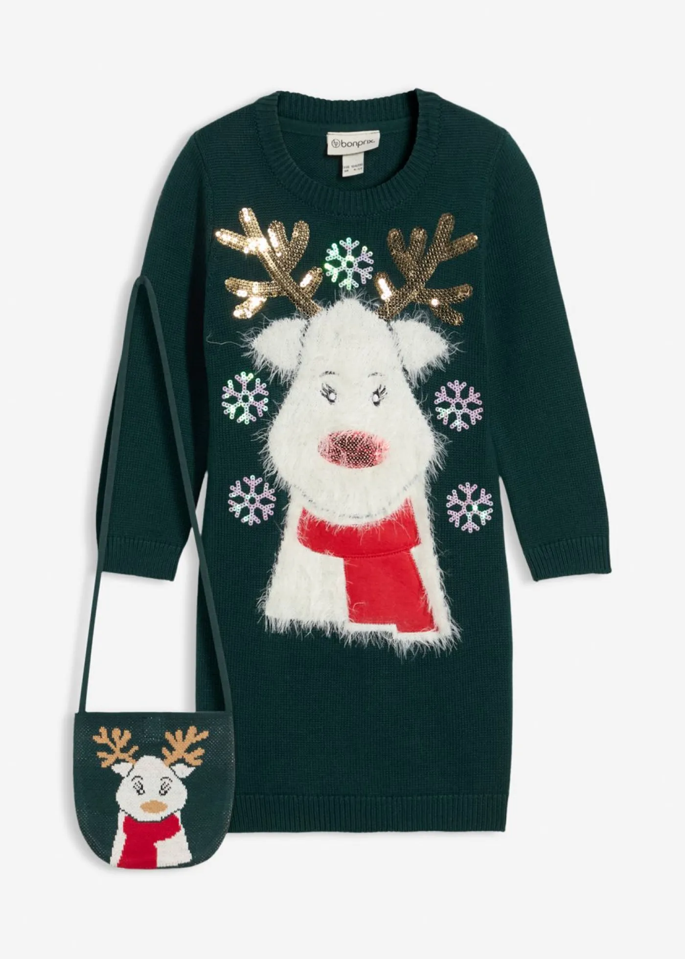Vestido navideño de punto con un bonito inserto de peluche en forma de pingüino y un pequeño bolsillo. Vestido de punto navideño para niñas, compuesto por dos piezas. El vestido de punto dispone de un bolsillo con un diseño a juego. Gracias a su corte cómodo y tejido agradable, el vestido resulta ideal para la temporada de frío. El motivo en la parte delantera completa el bonito aspecto invernal.