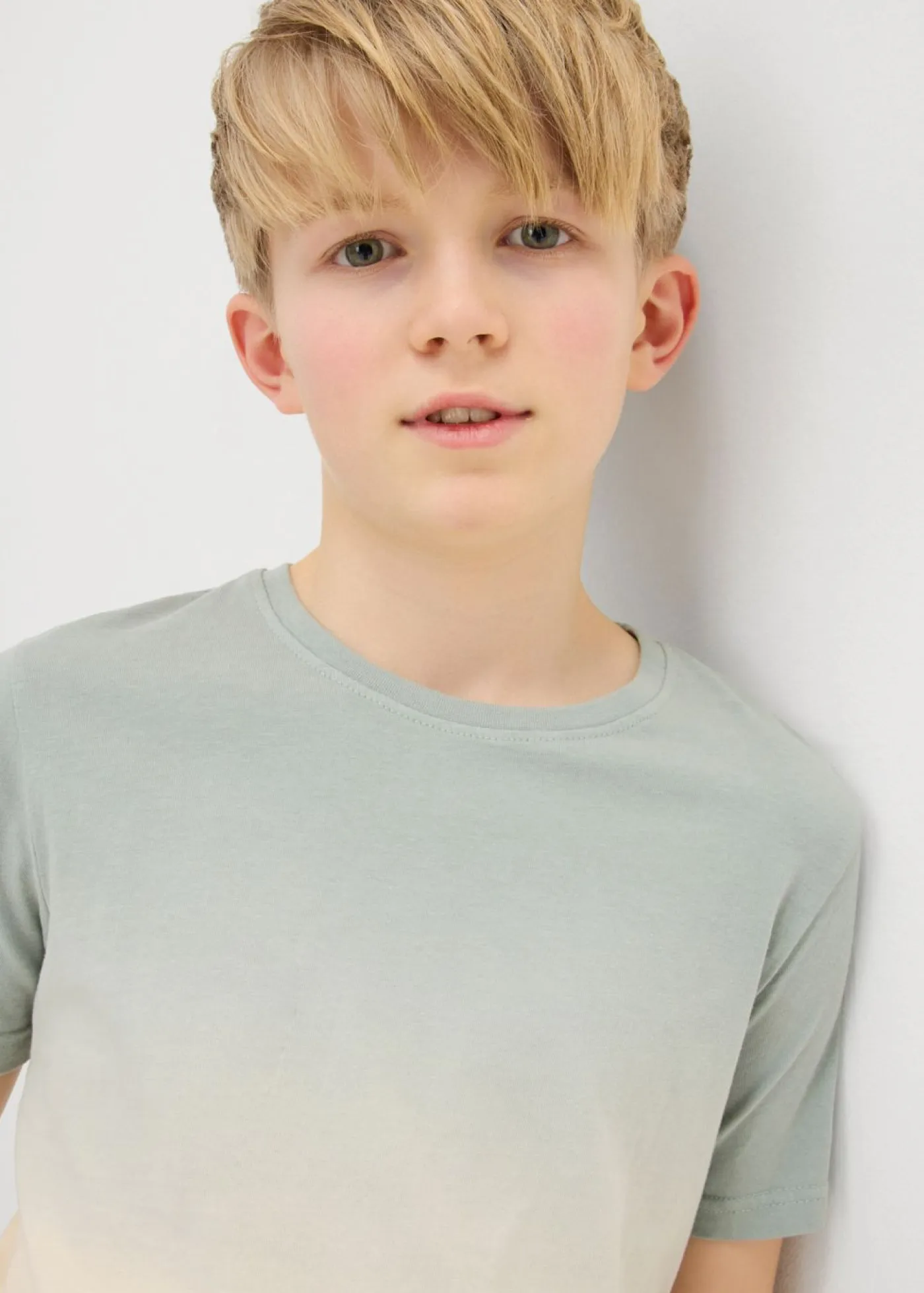 Camiseta moderna con degradado cromático y cuello redondo para niños.