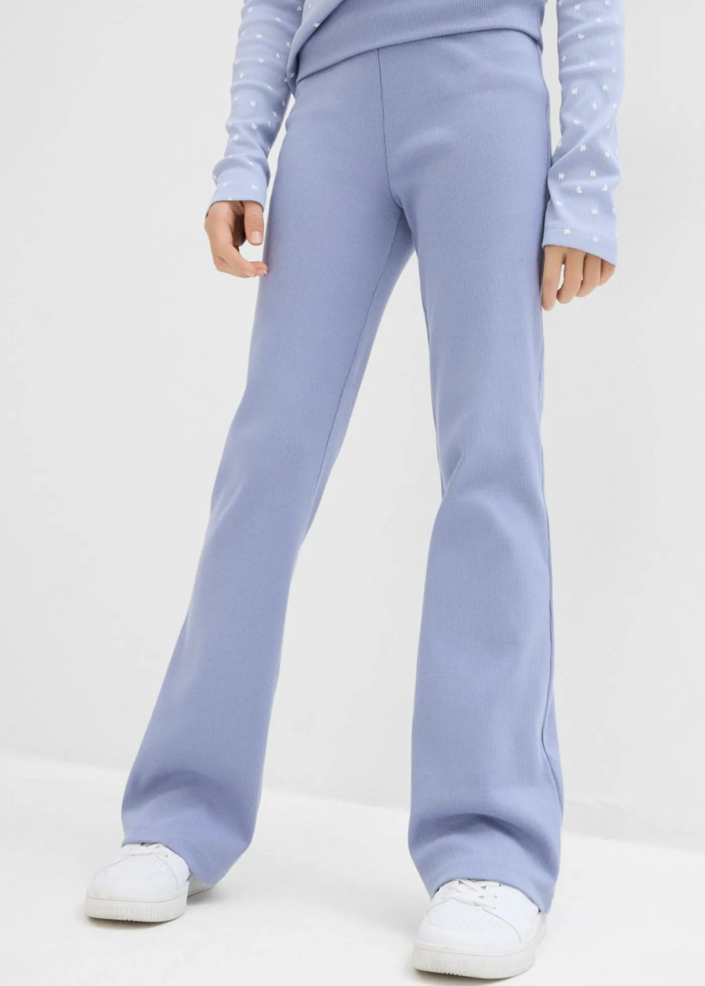 Elegante pantalón de punto acanalado con perneras acampanadas y cinturilla cómoda para niñas.