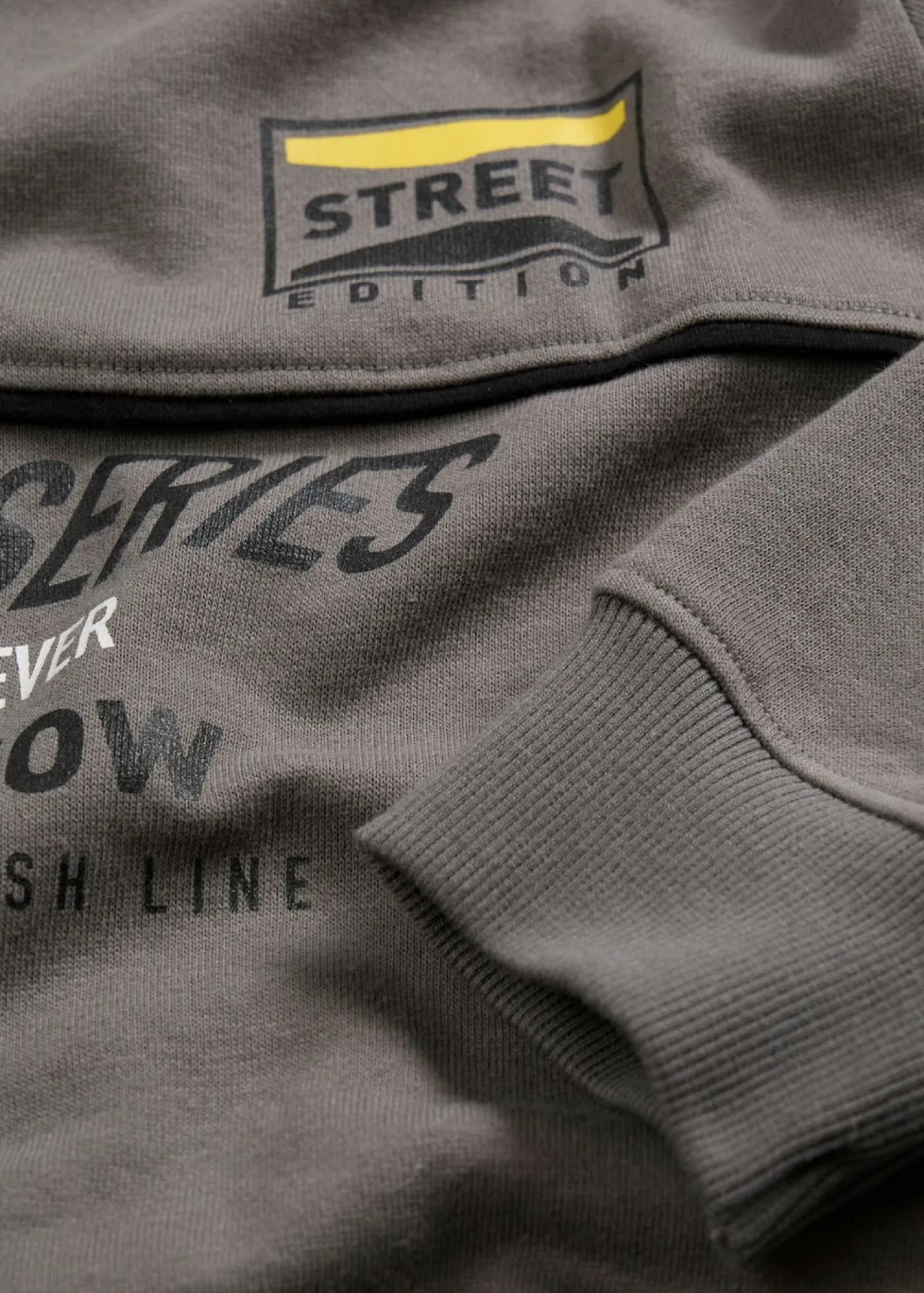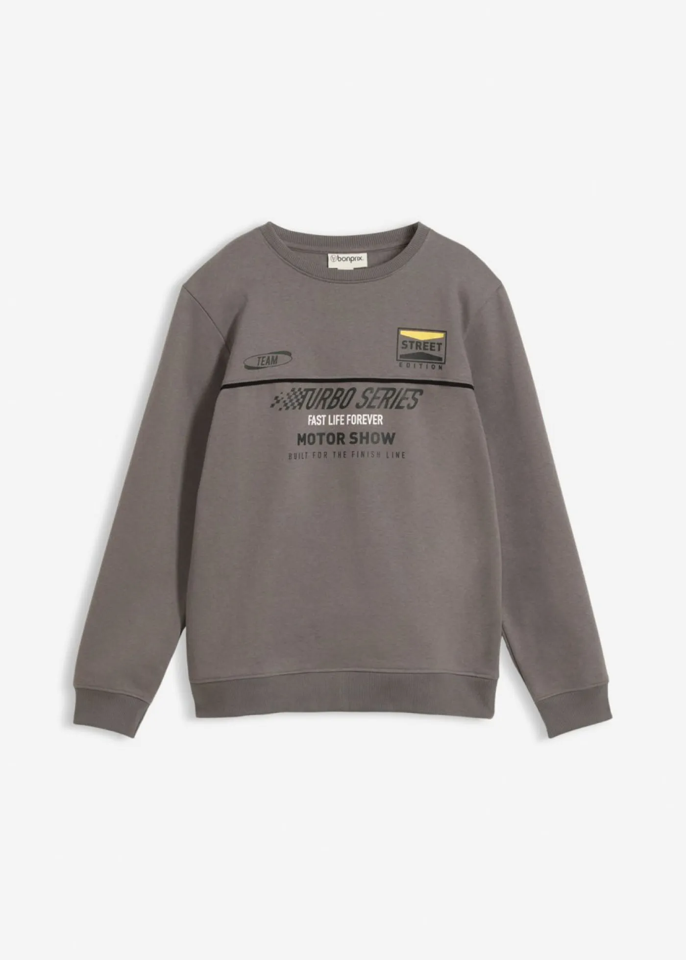 Sudadera de cuello redondo para niño con motivo de carreras.