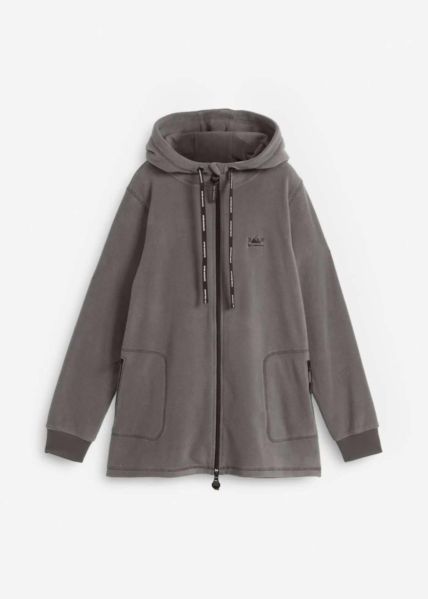 Chaqueta larga polar con corte en A. Largo total de aprox. 76 cm en talla 40/42.
