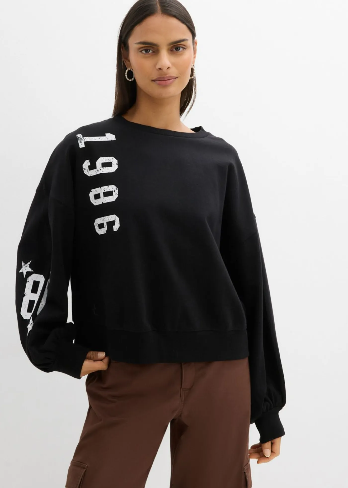 Sudadera oversize informal de algodón orgánico puro con estampado.