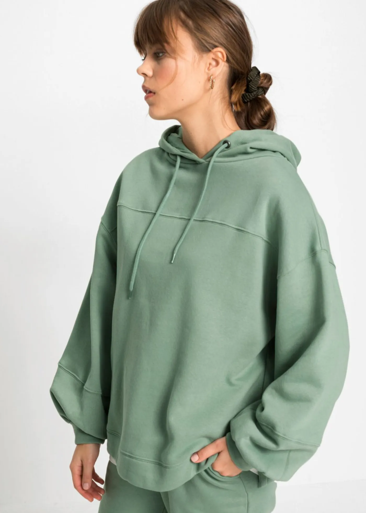 Sudadera informal en mezcla de algodón suave con capucha y mangas anchas.