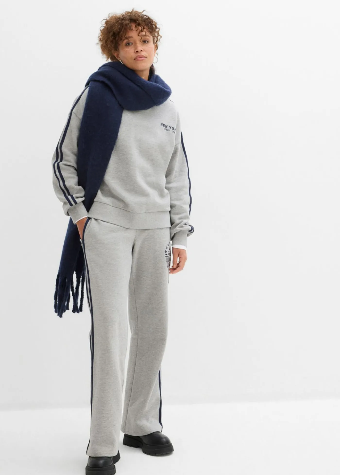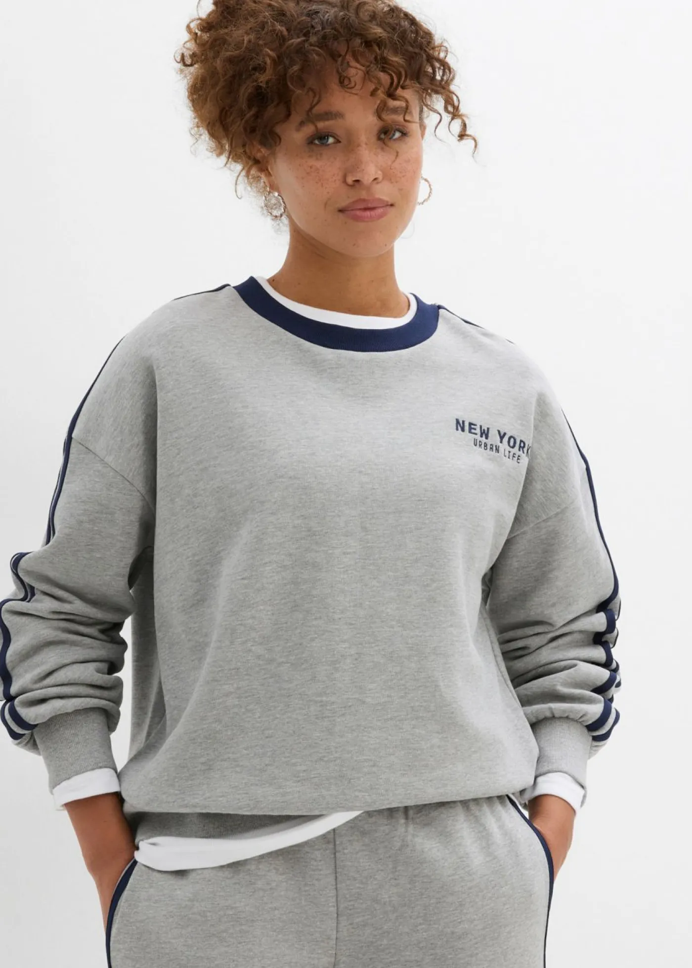 Moderna sudadera oversize de suave mezcla de algodón con rayas en contraste.