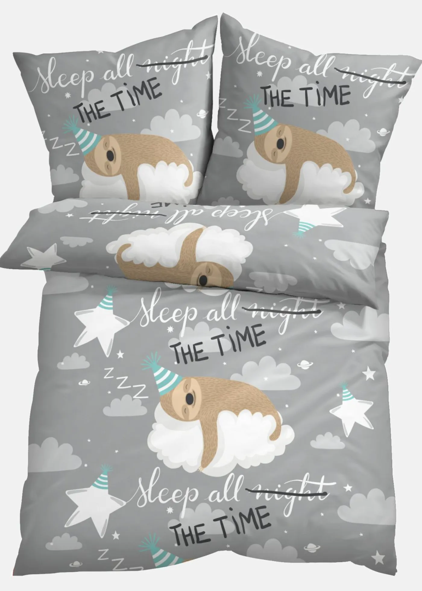 Imprescindible para los amantes de los perezosos: ropa de cama estampada con perezosos y texto.