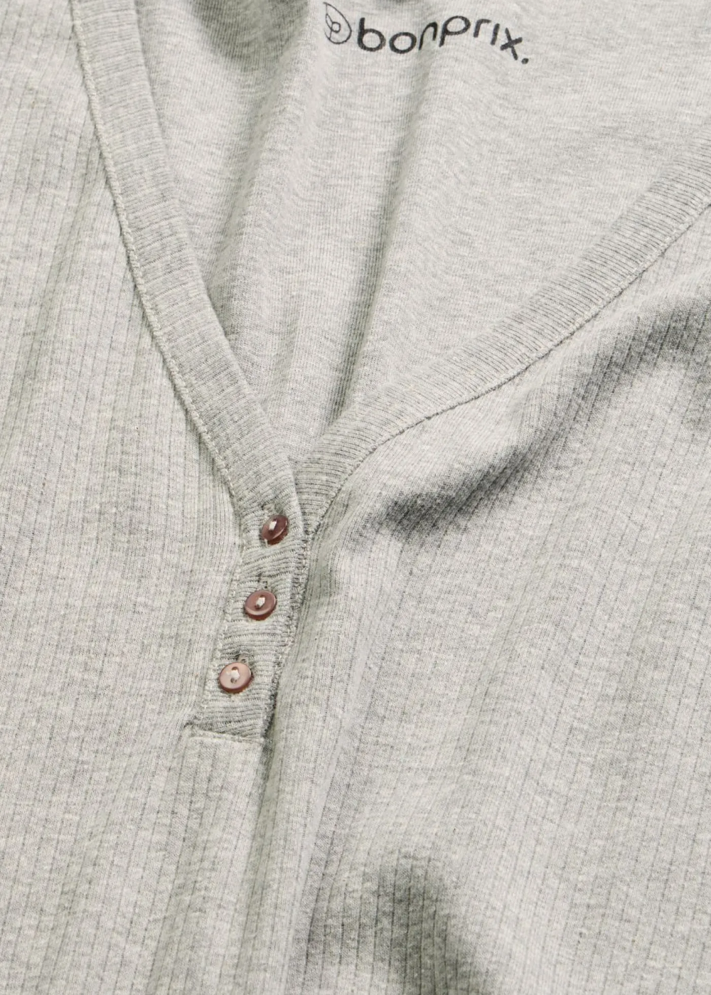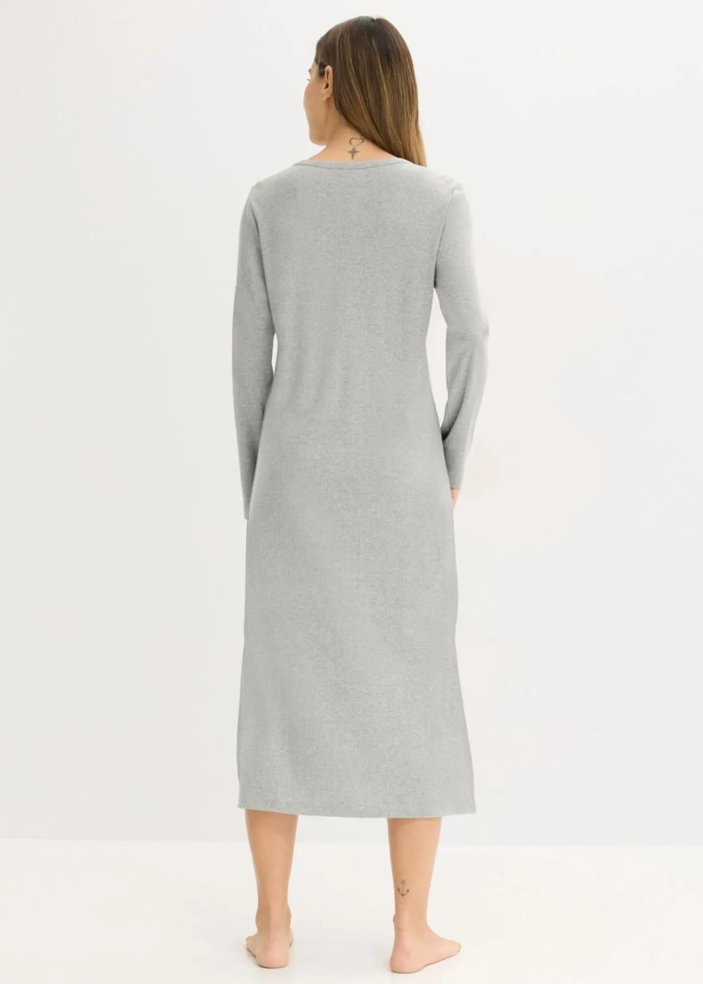 Camisón largo con manga larga, escote en V y aberturas laterales.