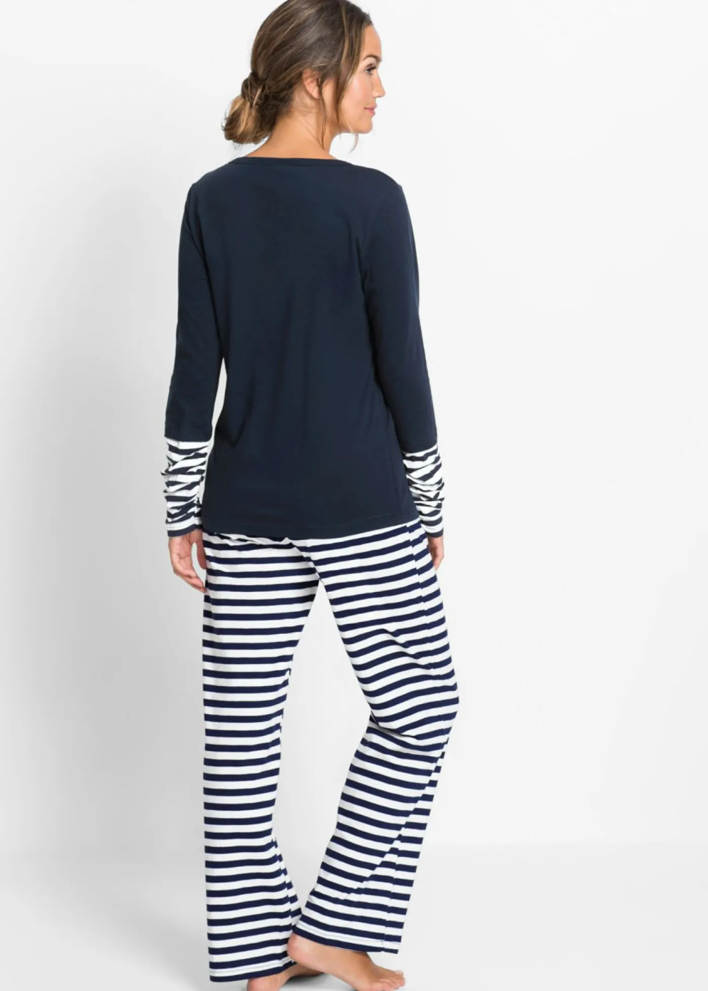 Cómodo pijama con diseño a rayas. Con puños fruncidos.