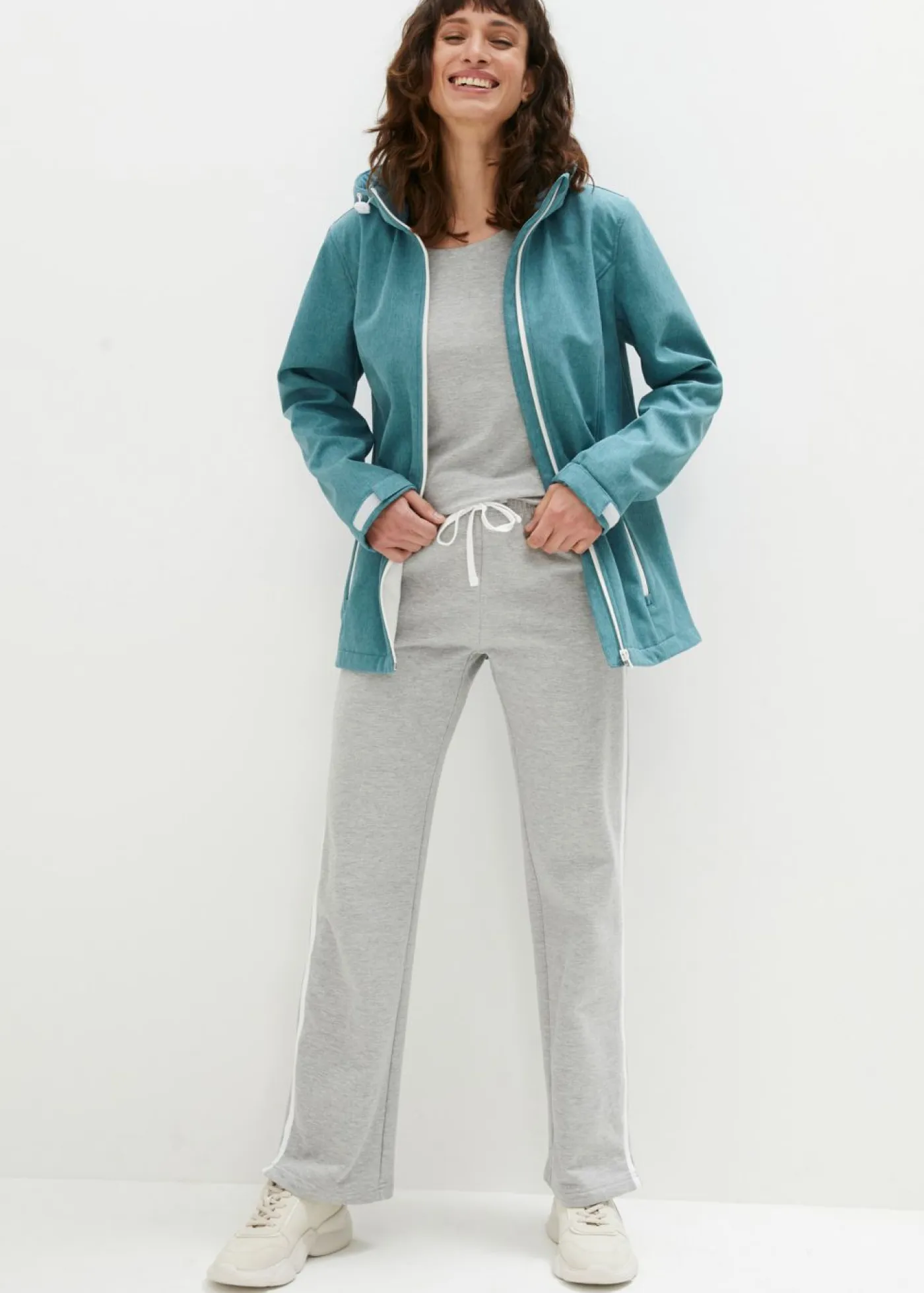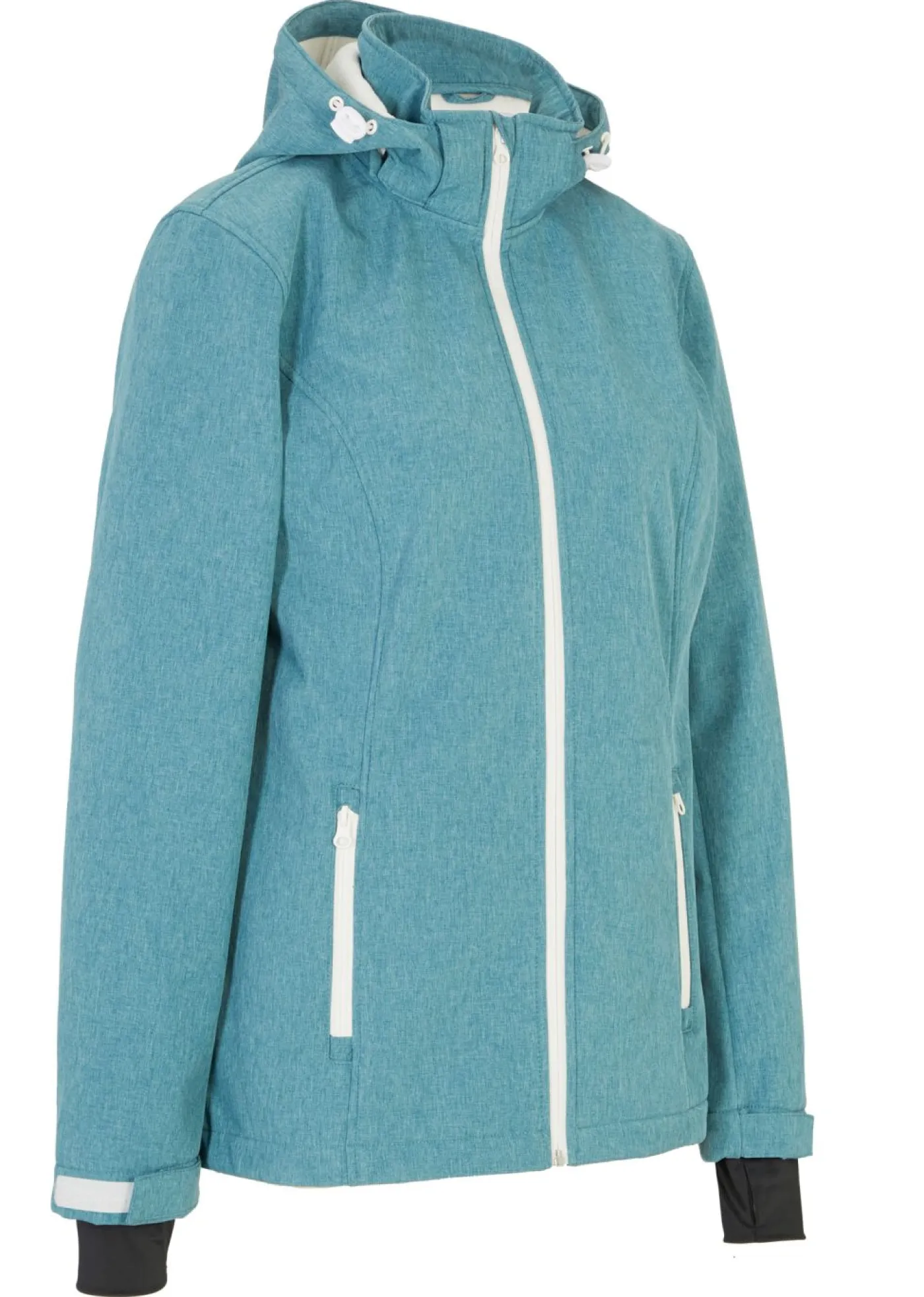 Chaqueta de softshell ajustada con capucha extraíble y bolsillos con cremallera, corte cómodo.