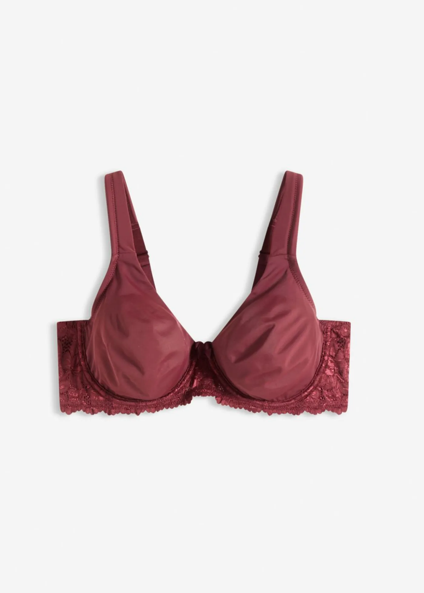 Sujetador sin costuras con encaje floral. Sujetador confort con un toque especial. Gracias a las copas preformadas sin costuras y a los cómodos tirantes ligeramente acolchados, apenas notará el sujetador sobre la piel. Los aros sostienen y dan una fijación perfecta al mismo tiempo. El encaje bajo el pecho y en los lados otorga al sujetador ese algo seguro. Lavar a mano.