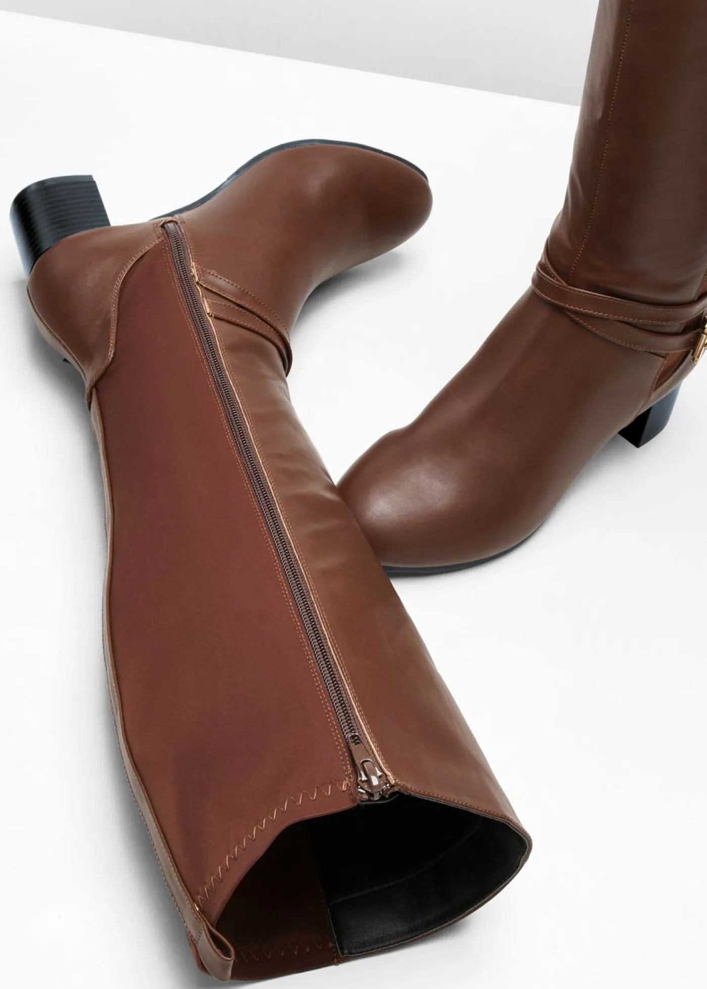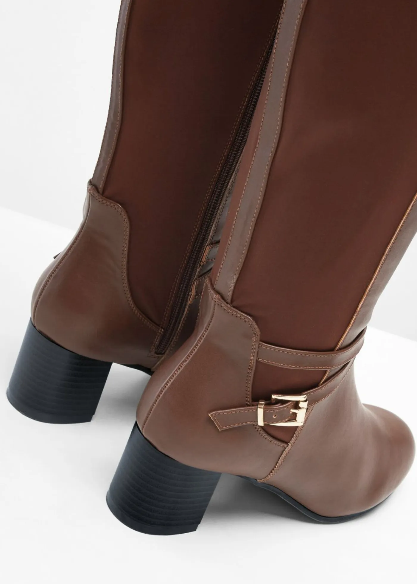 Botín atemporal de caña ancha con hebilla decorativa.