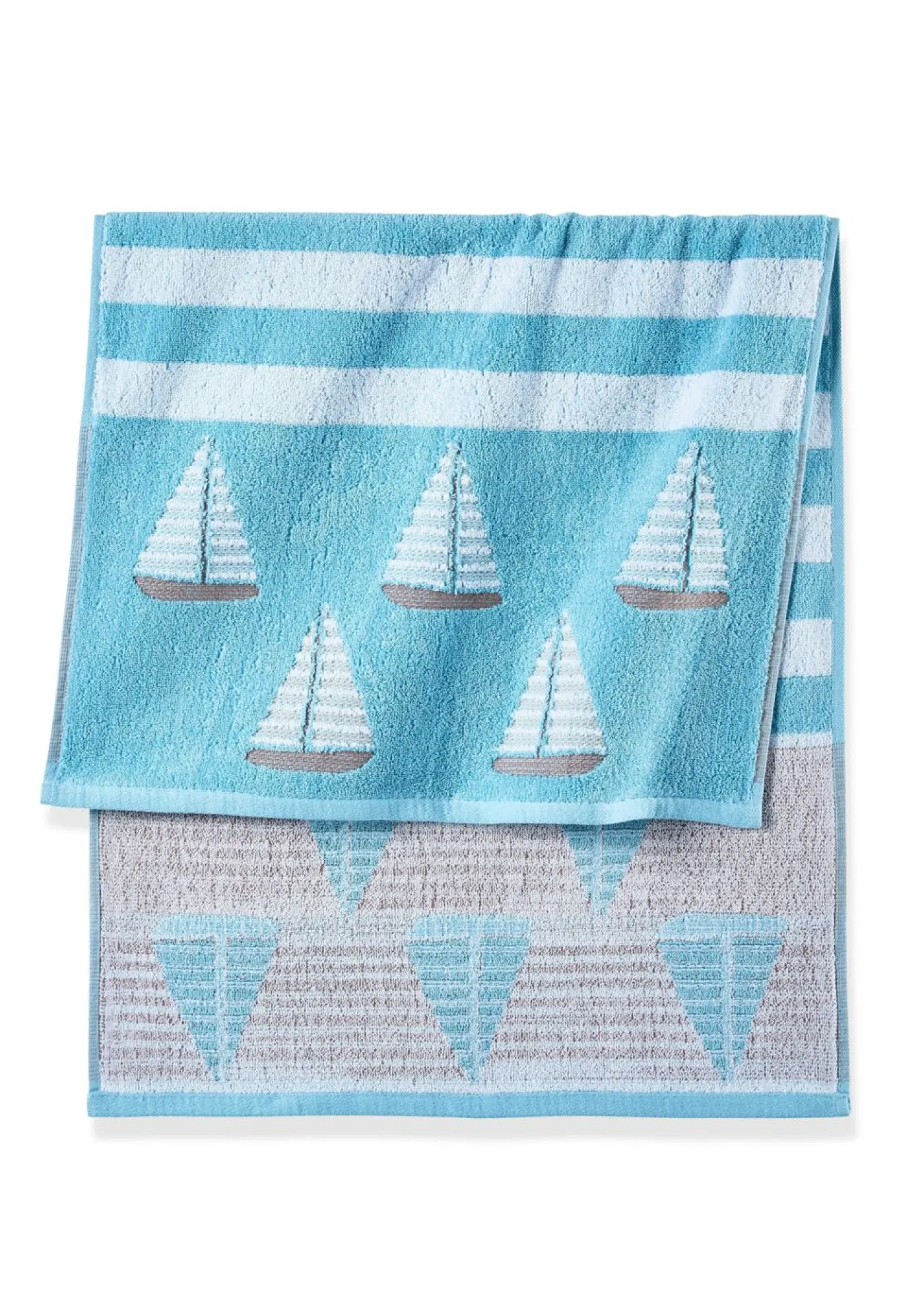 Toalla de mano con diseño marinero. Toalla de mano con diseño de barcos. Se puede lavar a 60 °C. Agradable al tacto y muy absorbente.