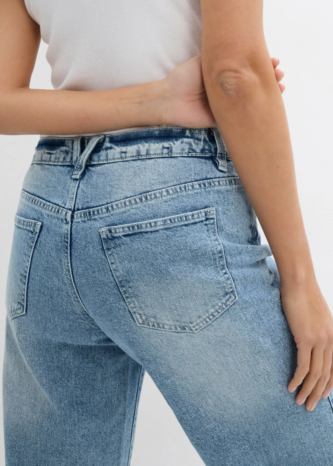 Vaqueros de pernera ancha, mid waist, largo completo y low stretch, Largo petite