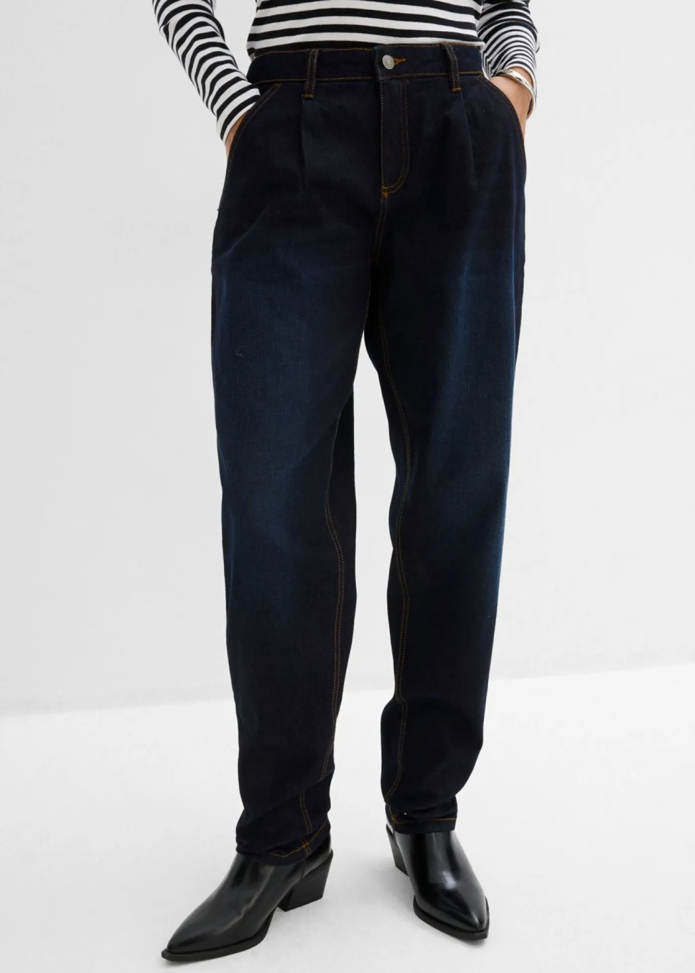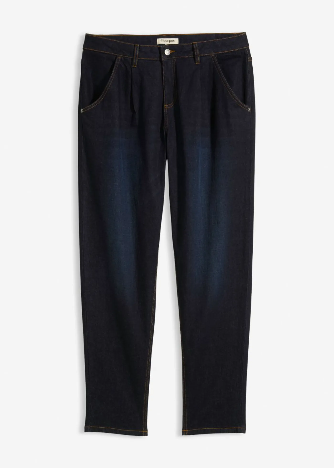 Vaqueros de corte ancho, estilo casual con pliegues.