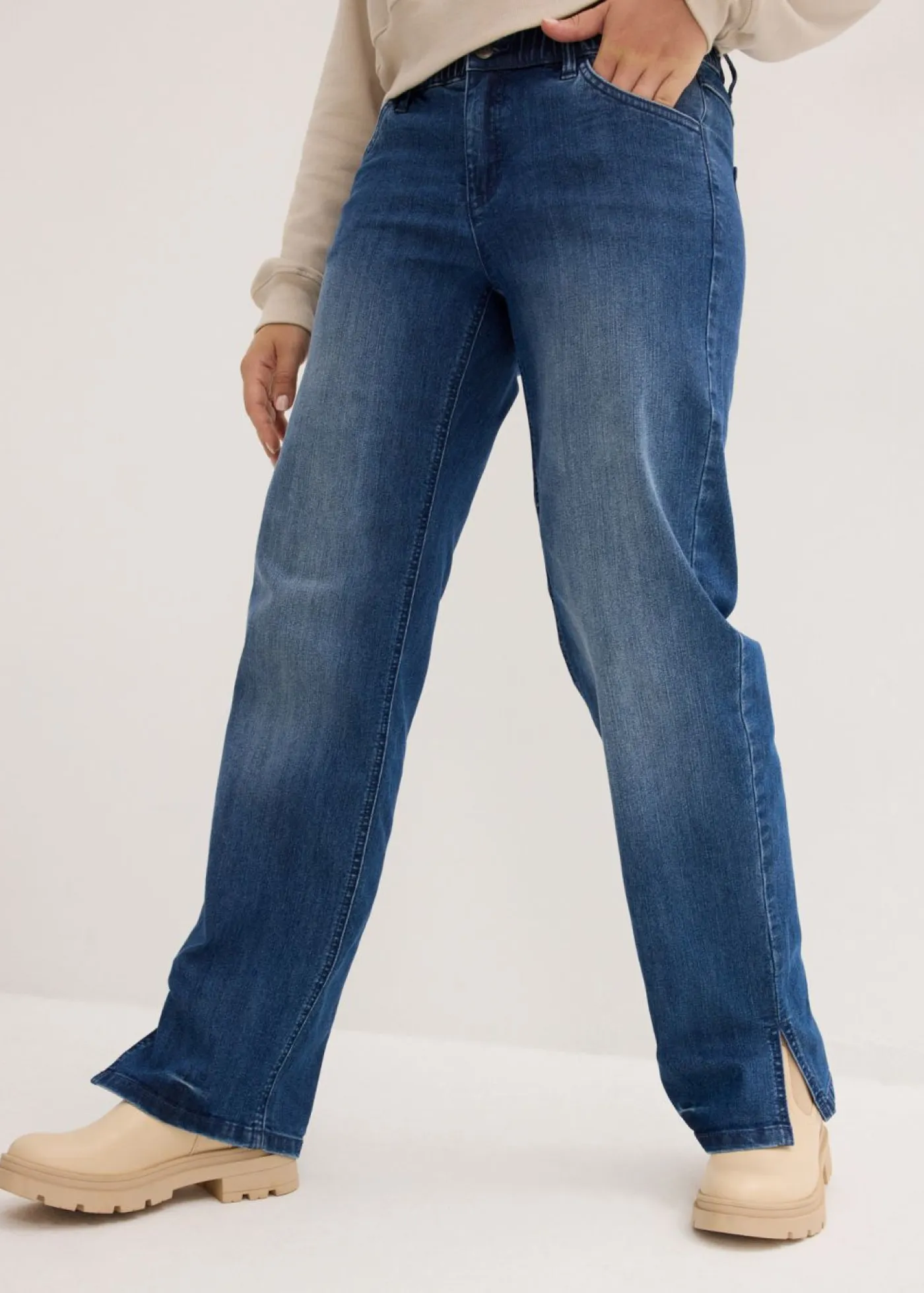 Vaqueros de pernera ancha, high waist, cintura cómoda