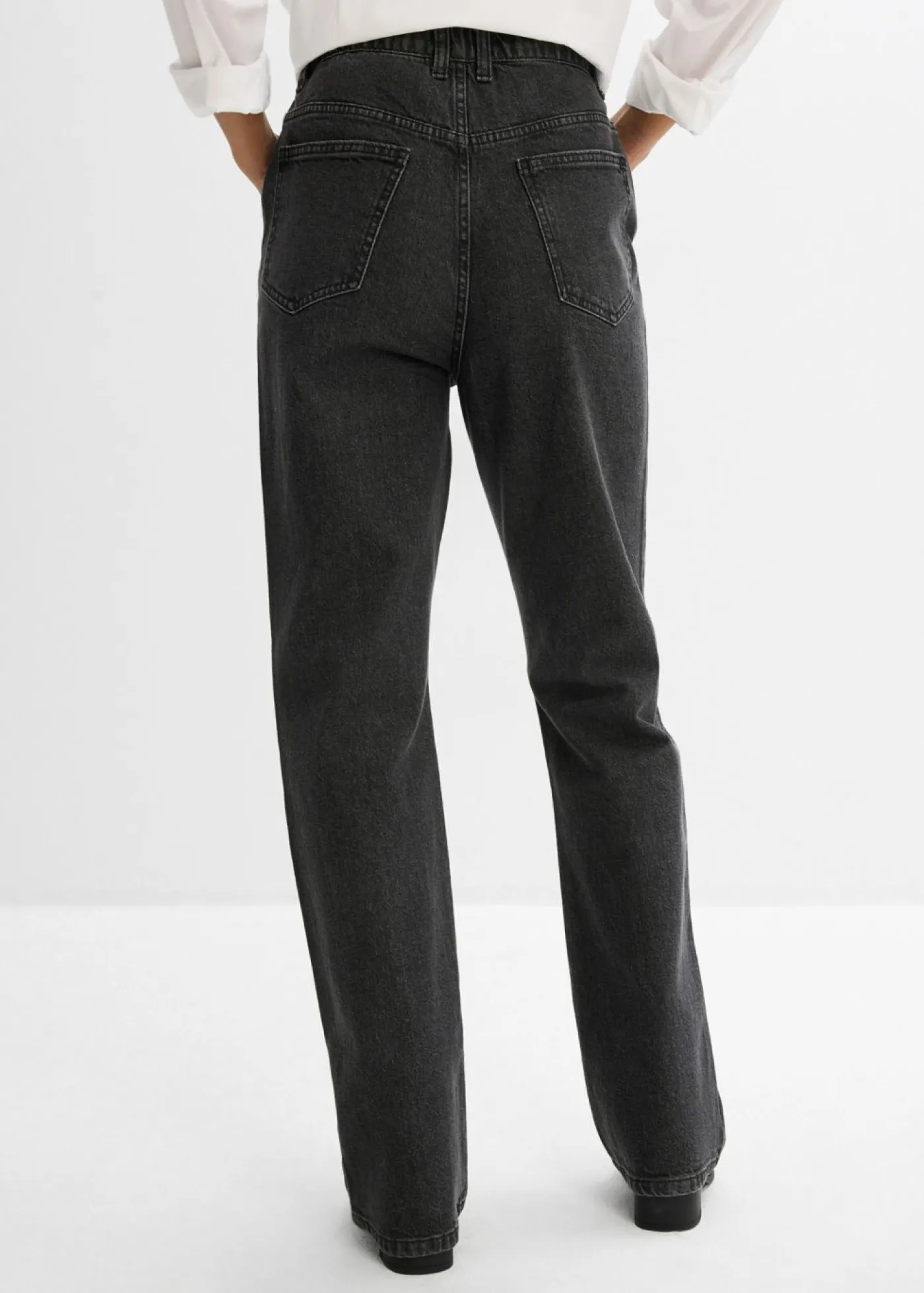 Vaqueros rectos de talle medio con corte holgado, cinturilla elástica y piedras brillantes, Largo. regular