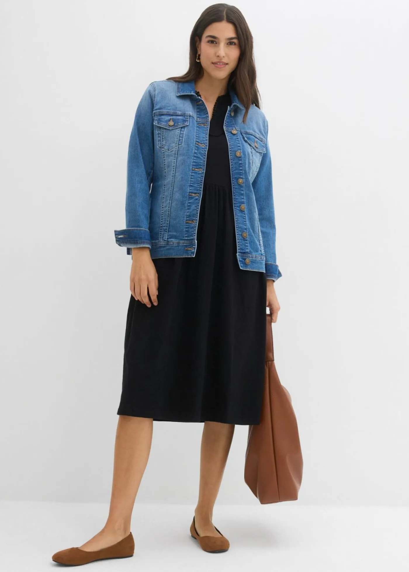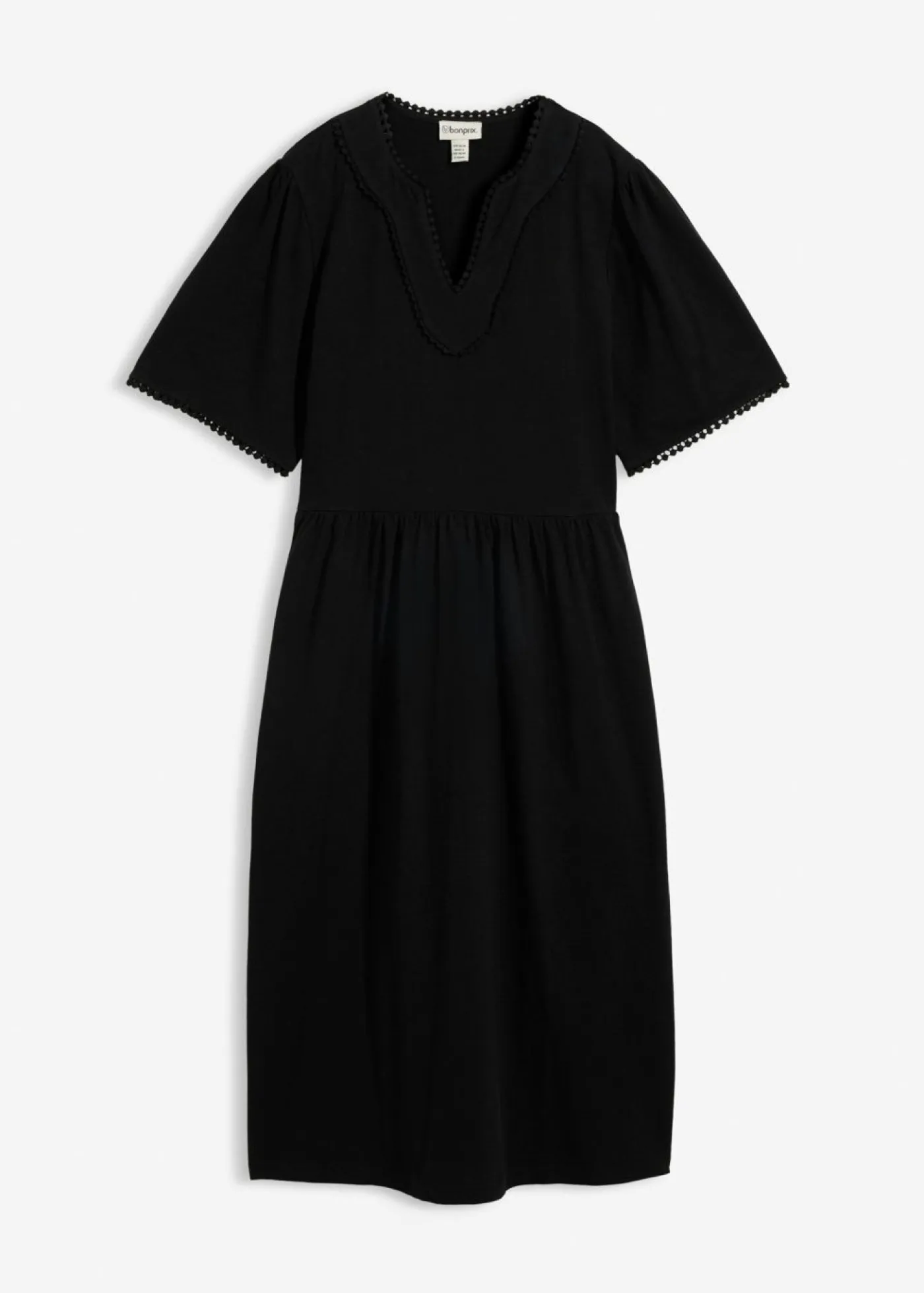 Vestido camisero midi con detalles decorativos. Largo total de aprox. 114 cm en talla 40/42. Se puede lavar a máquina.