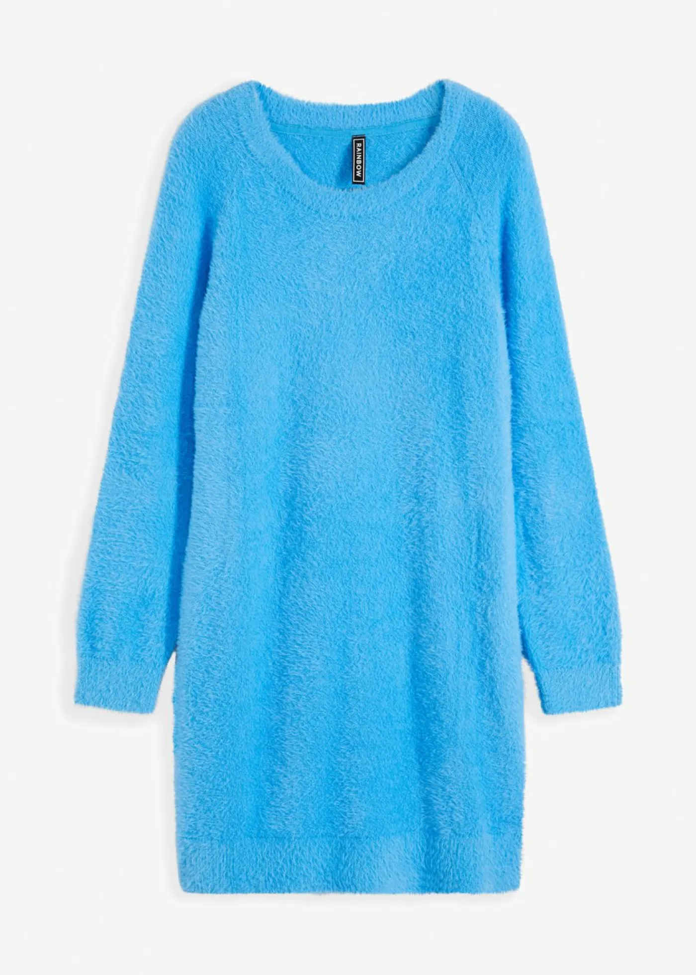 Moderno vestido corto de punto con mangas raglán. Largo de aprox. 88 cm en talla 40/42. Se puede lavar a máquina.