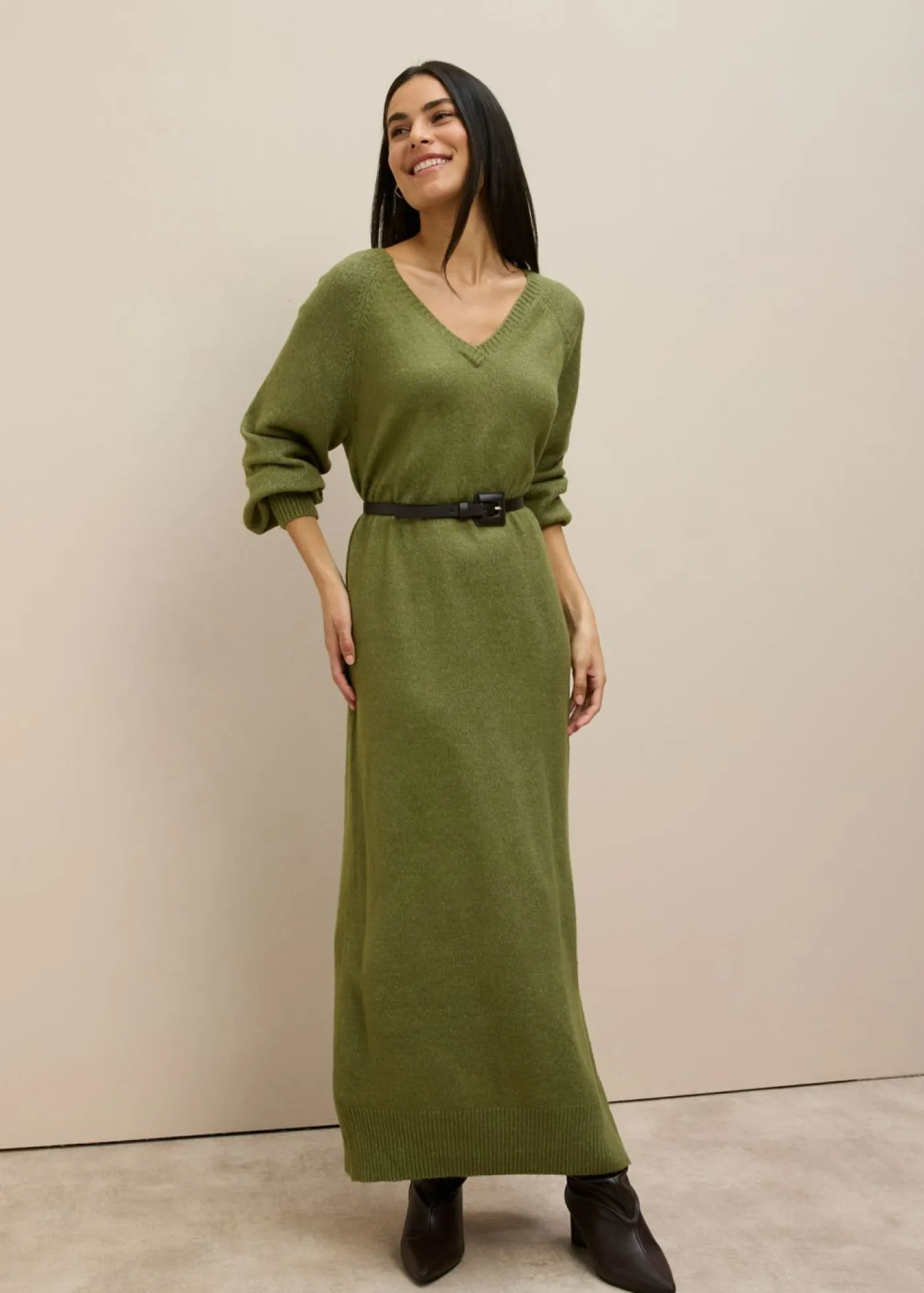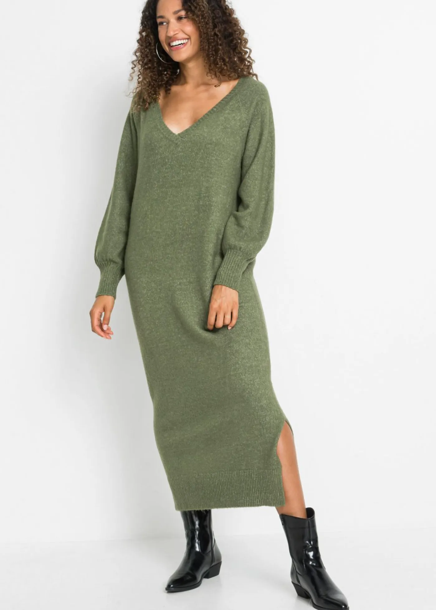 Vestido holgado de punto con largo midi, Largo. regular