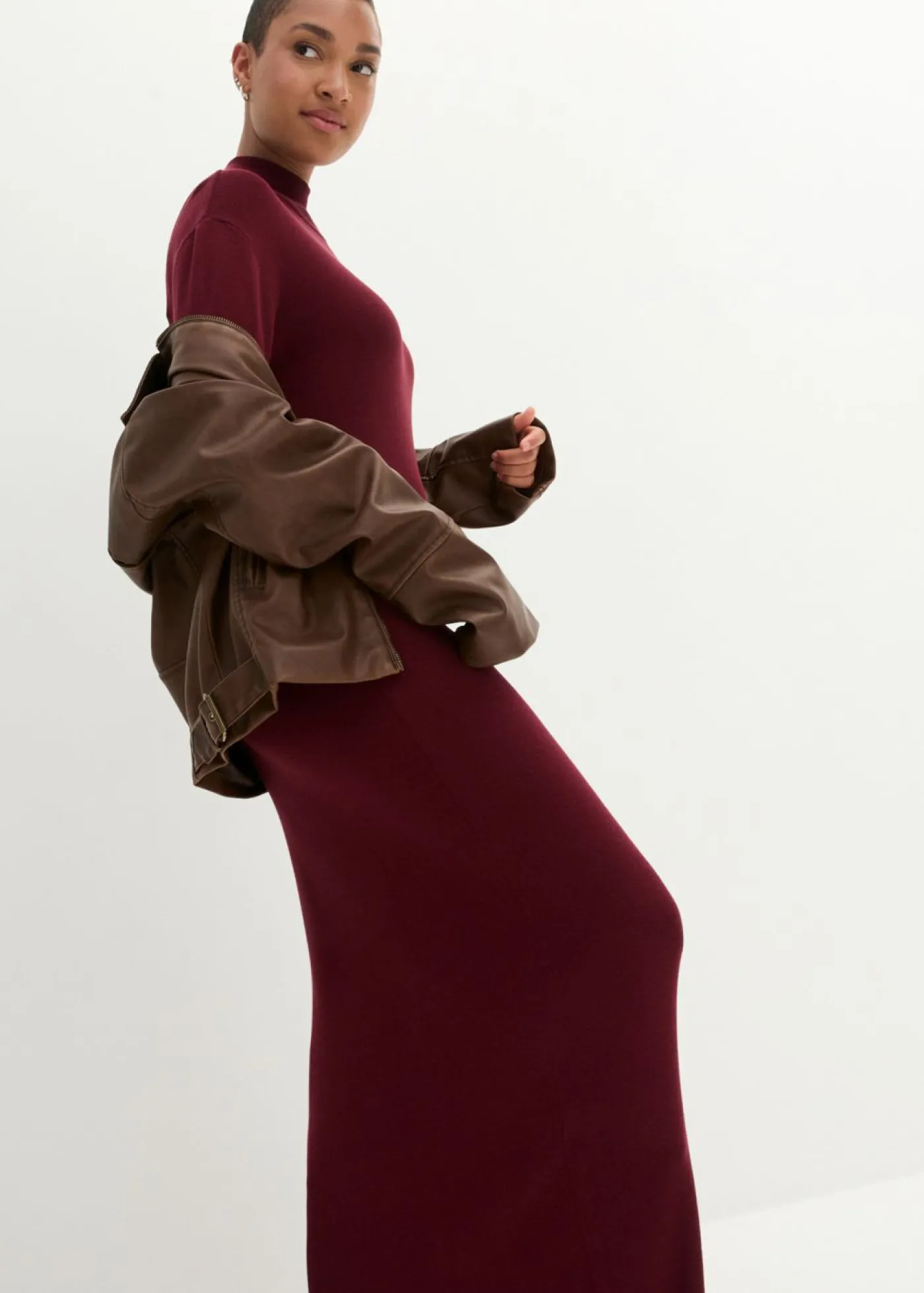Elegante vestido de punto fino con un largo favorecedor.
