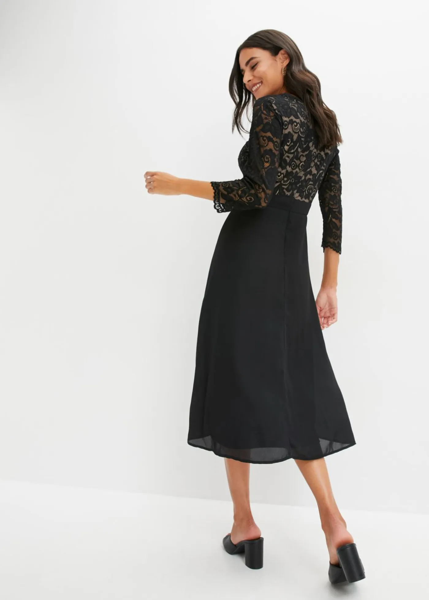 Vestido elegante con pronunciado escote en V. Precioso vestido para muchas ocasiones. Falda de gasa. Largo de aprox. 114 cm en talla 36/38.