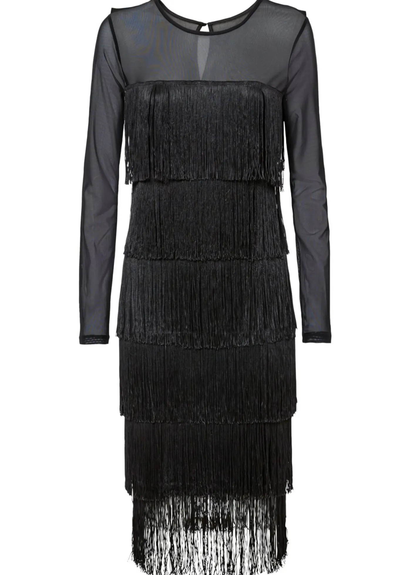 Vestido midi de malla vaporosa con flecos, Largo petite