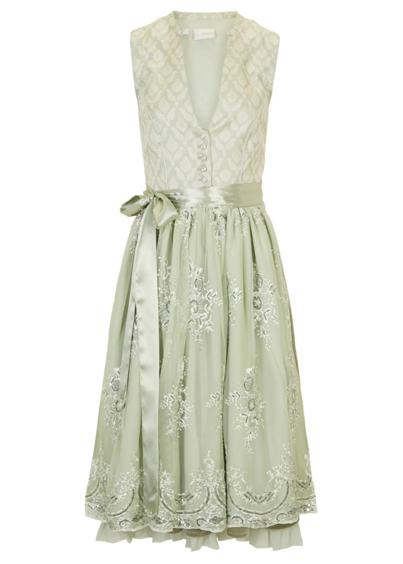Dirndl de alta calidad confeccionado en elegante jacquard con tapeta de botones decorativa y bonitos bordados.