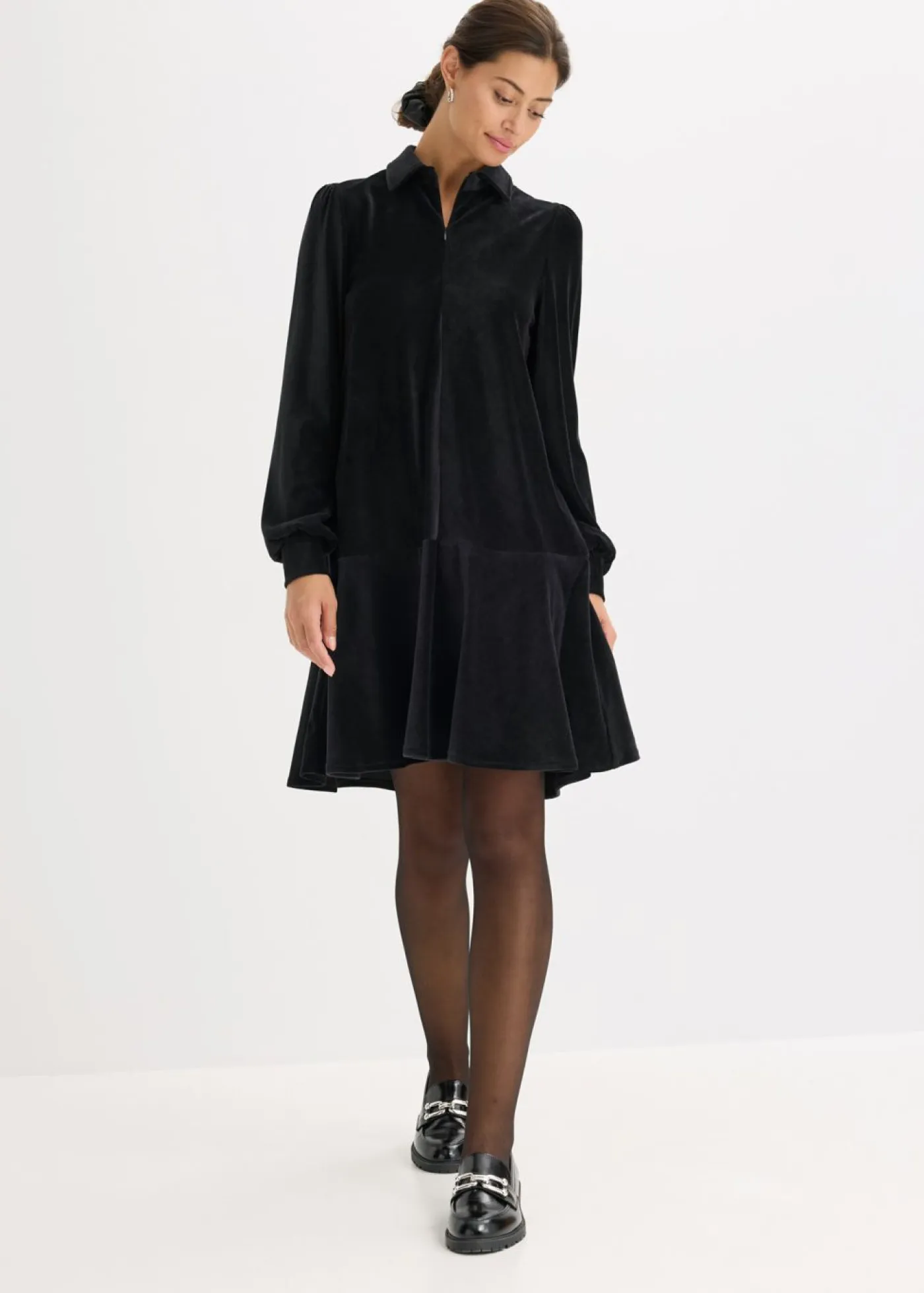 Con cuello y cremallera en el escote.
