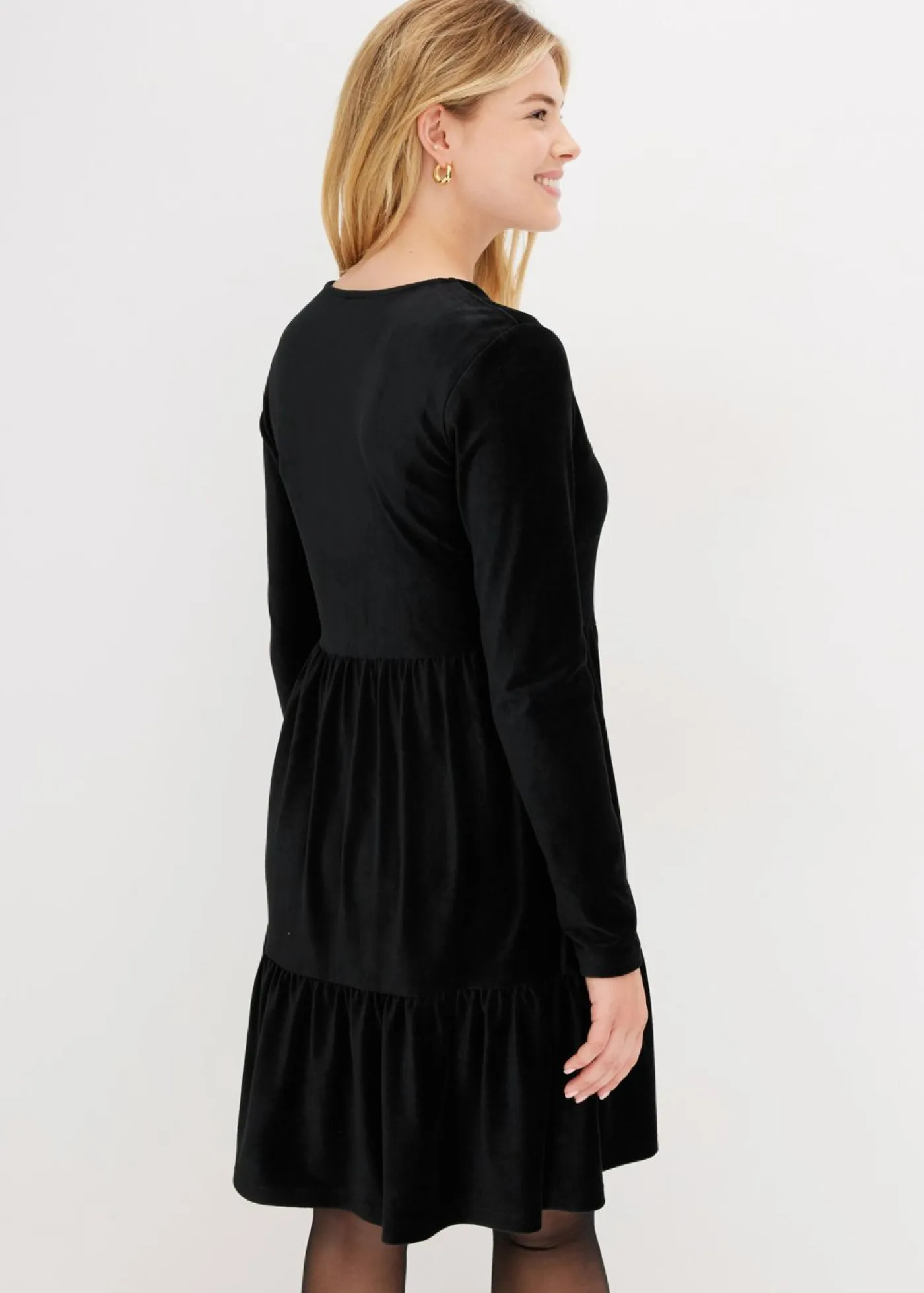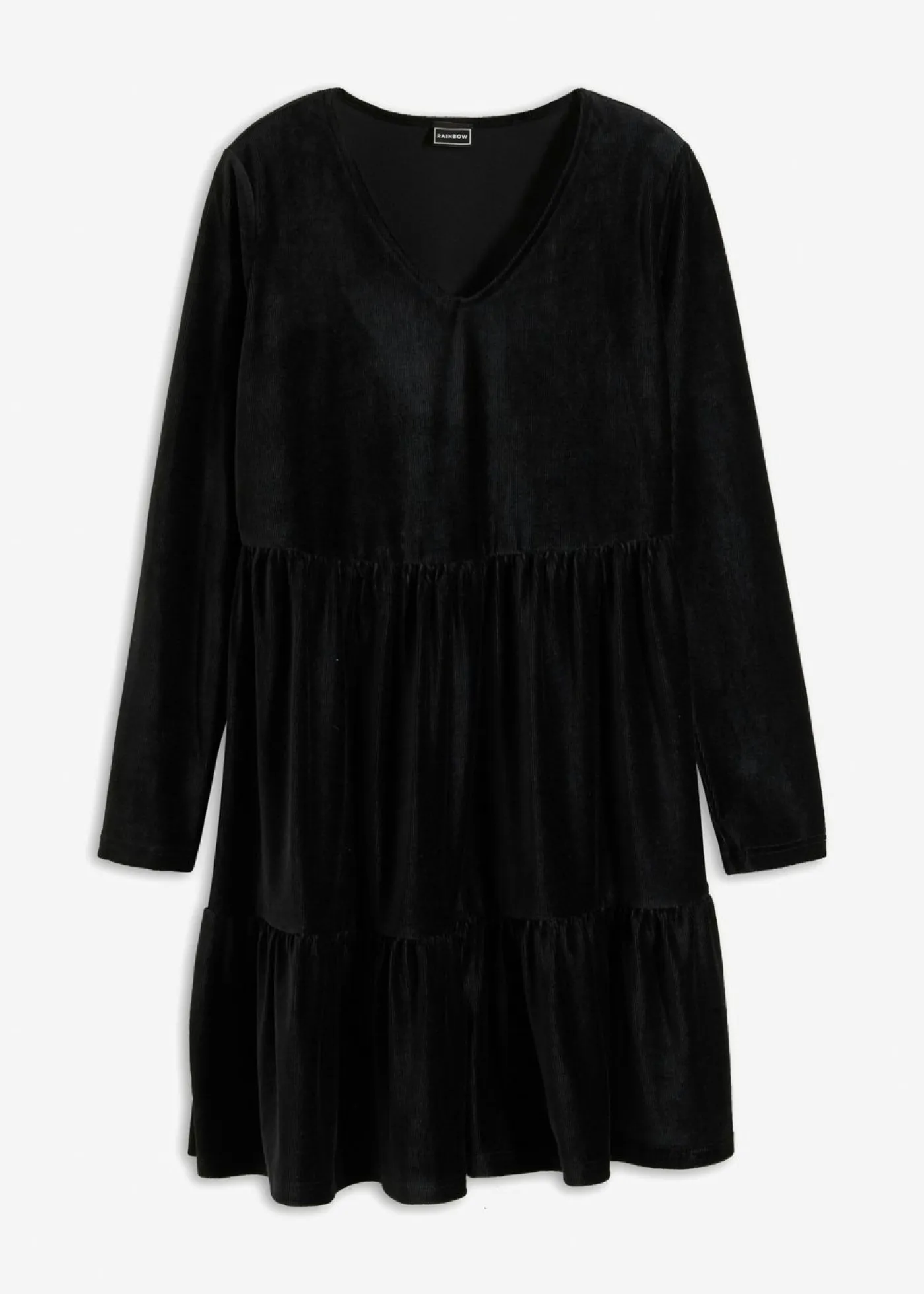 Divertido vestido de terciopelo con fruncidos. Largo de aprox. 96 cm en talla 40/42. Se puede lavar a máquina.