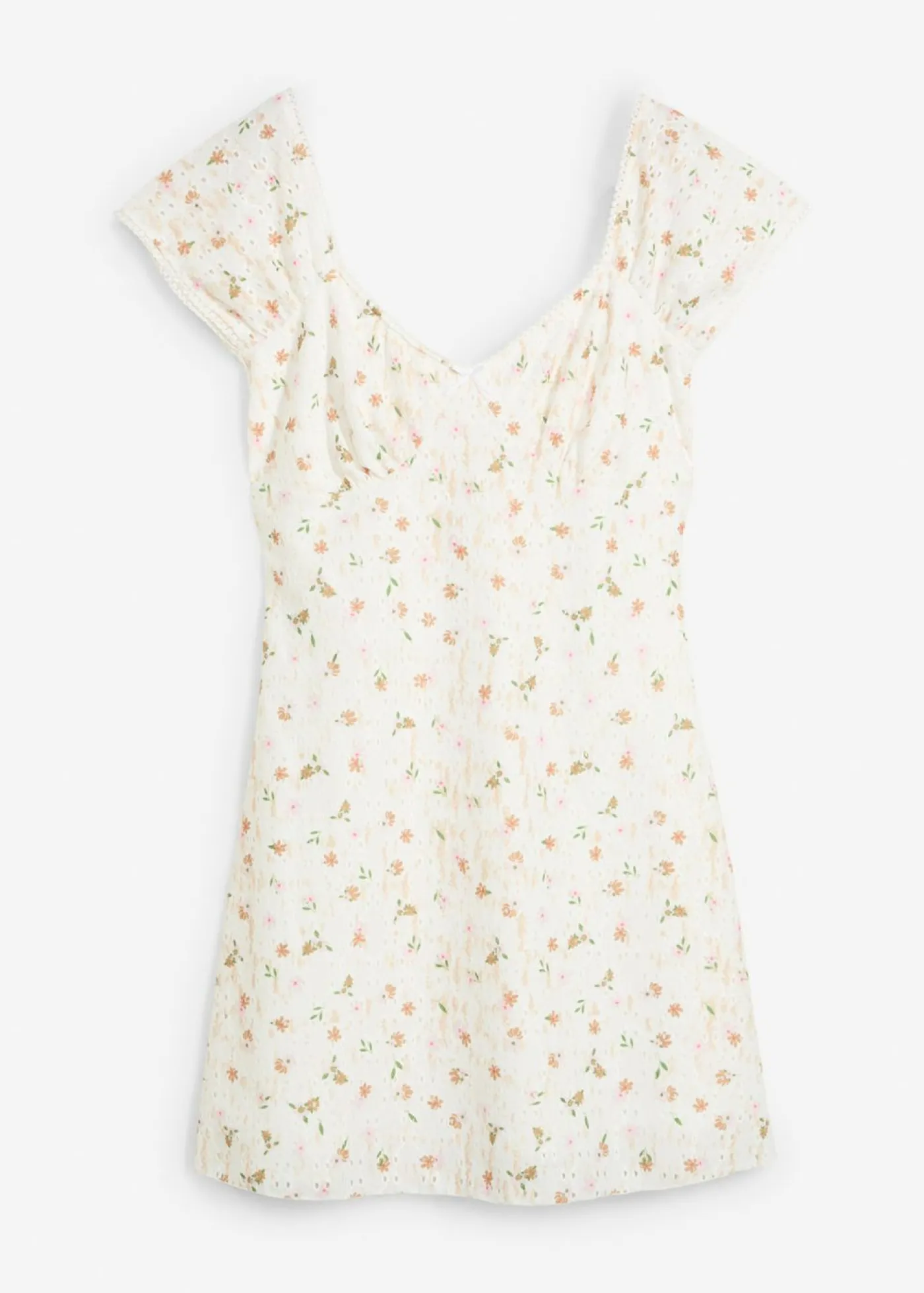 Vestido corto de encaje con estampado de flores.