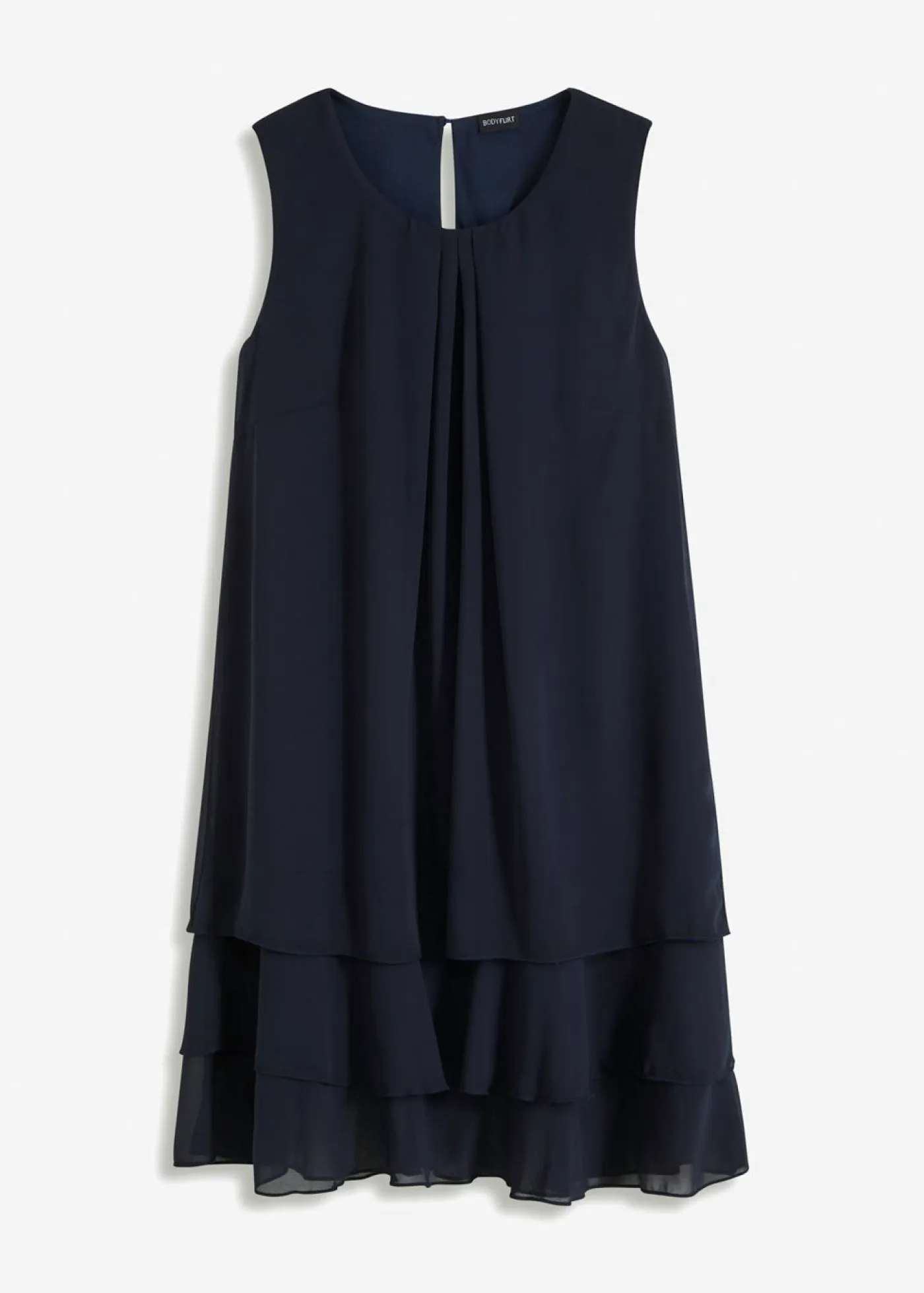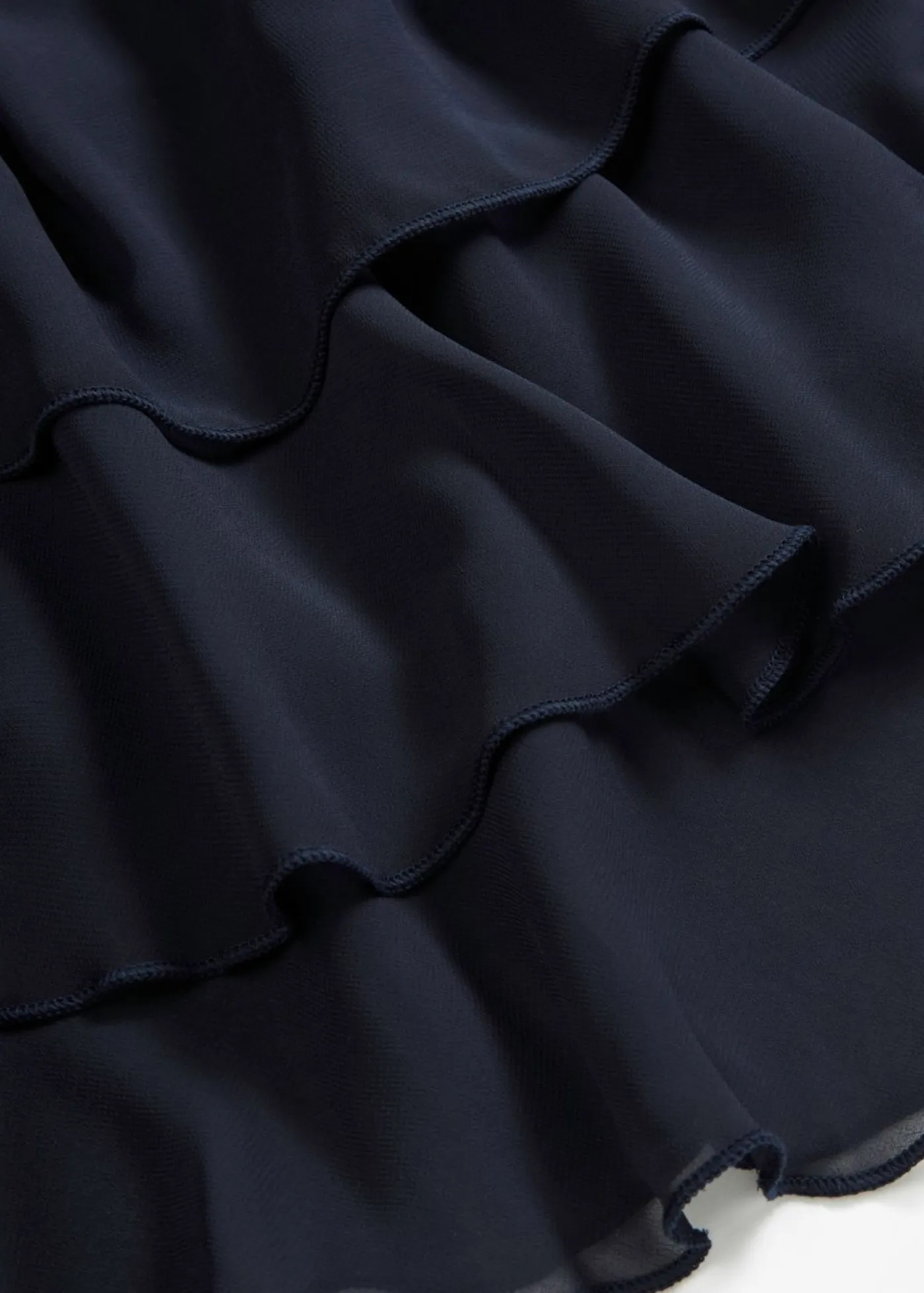 Encantador vestido de gasa en corte A con volantes. Femenino vestido de gasa con varias capas de volantes en el bajo. Largo de aprox. 90 cm en talla 38.