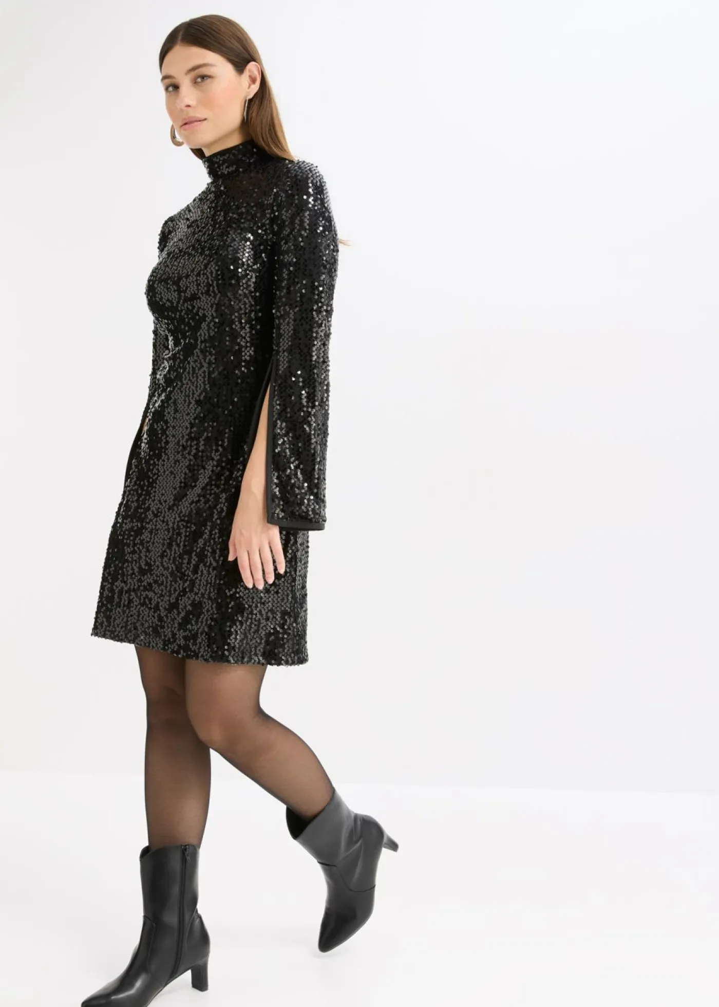Vestido de lentejuelas con mangas de trompeta